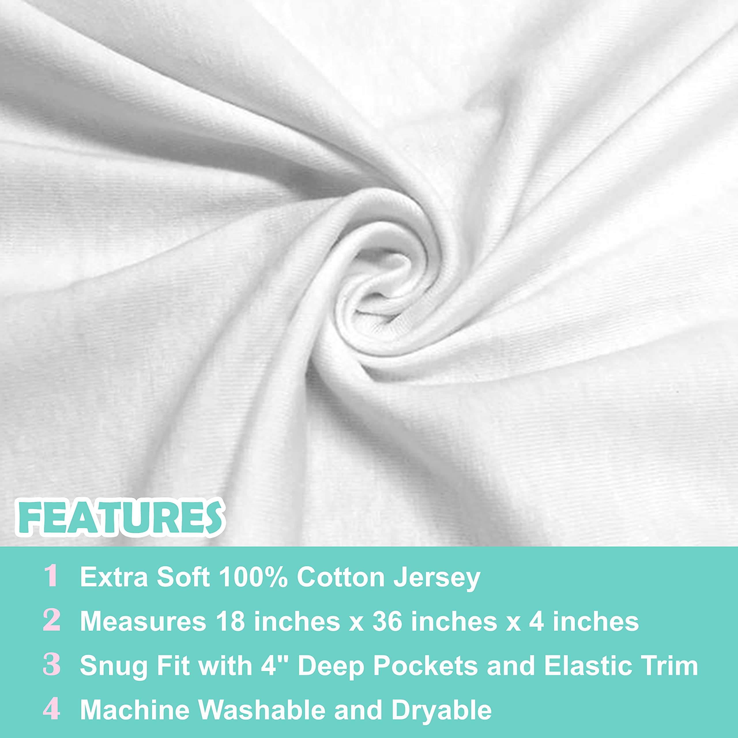 Perfect Fit & Secure Coverage: Made from 100% cotton jersey and measuring 36” x 18” with a depth of 4 inches, our cradle/bassinet sheets snugly fit most cradle and bassinet pads.