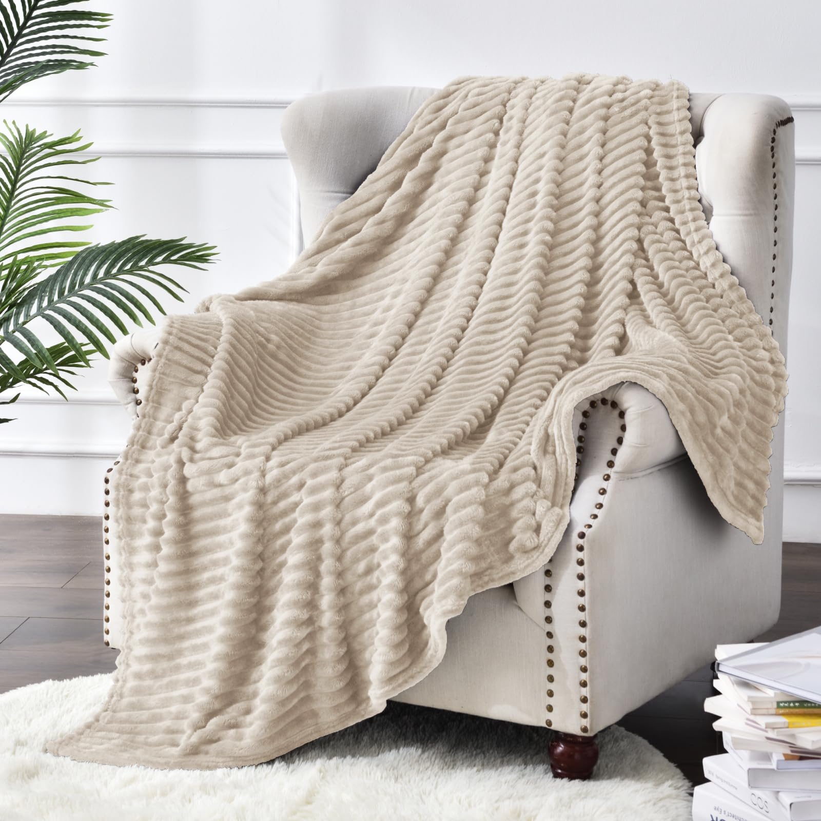 【Premium Fleece Blanket】: BEDELITE fleece blankets are made from 100% microfiber polyester and brushed to create extra softness on both sides. The excellent stripe pattern with 3D touching offers you amazing senses and super warmth, while lightweight blankets keep you from breaking out in a sweat.