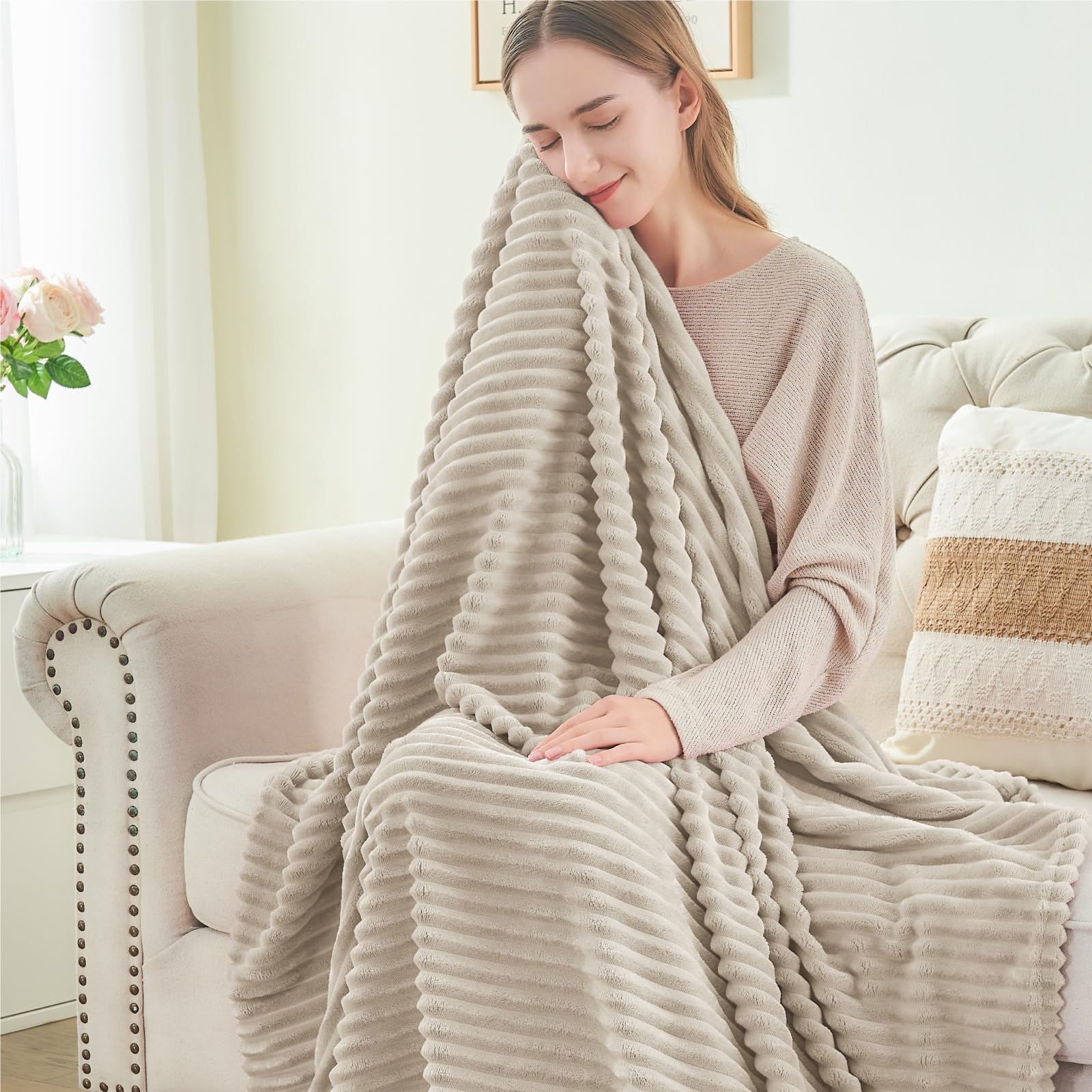 【All Seasons Suitable】: Perfect thickness for keeping warm and breathable all year round. Warping on this fuzzy blanket, lets the warmth envelop your body on chilly nights in fall or winter. Cover your lap with softness and cozy for enjoying yourself outside in spring or summer. Timeless stripe patterns and multiple colors can complete all seasons' homes.