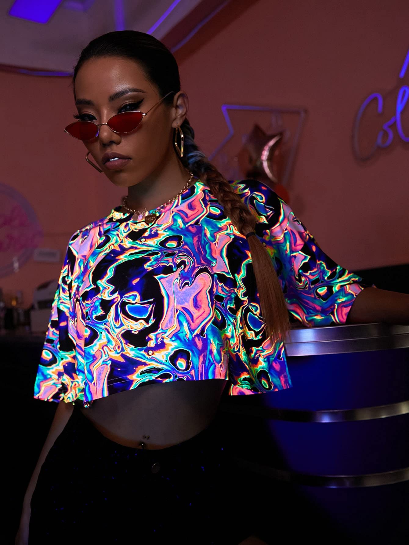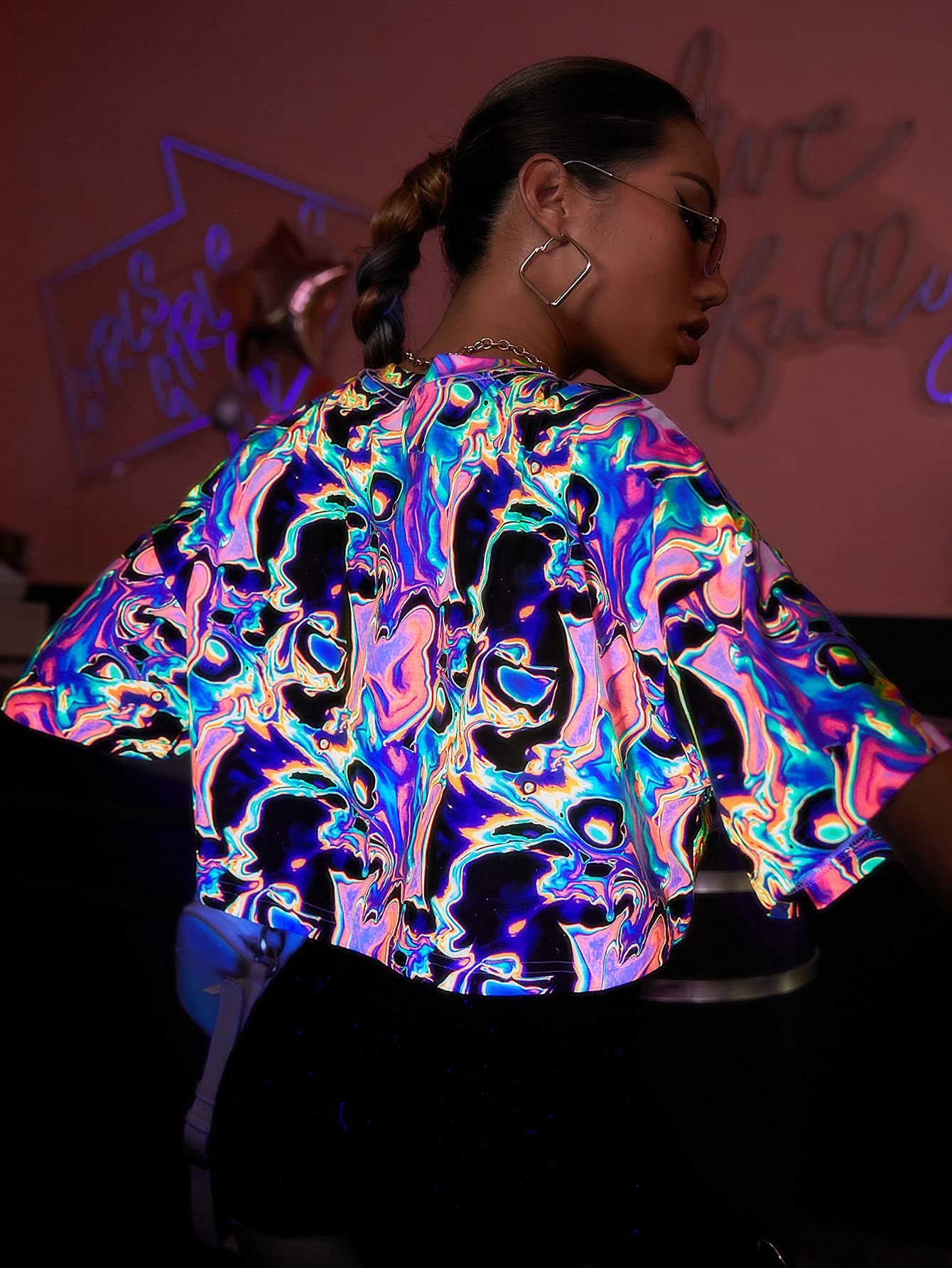 Reflective, short sleeve, round neck, crop tops t shirt, oversized t shirt