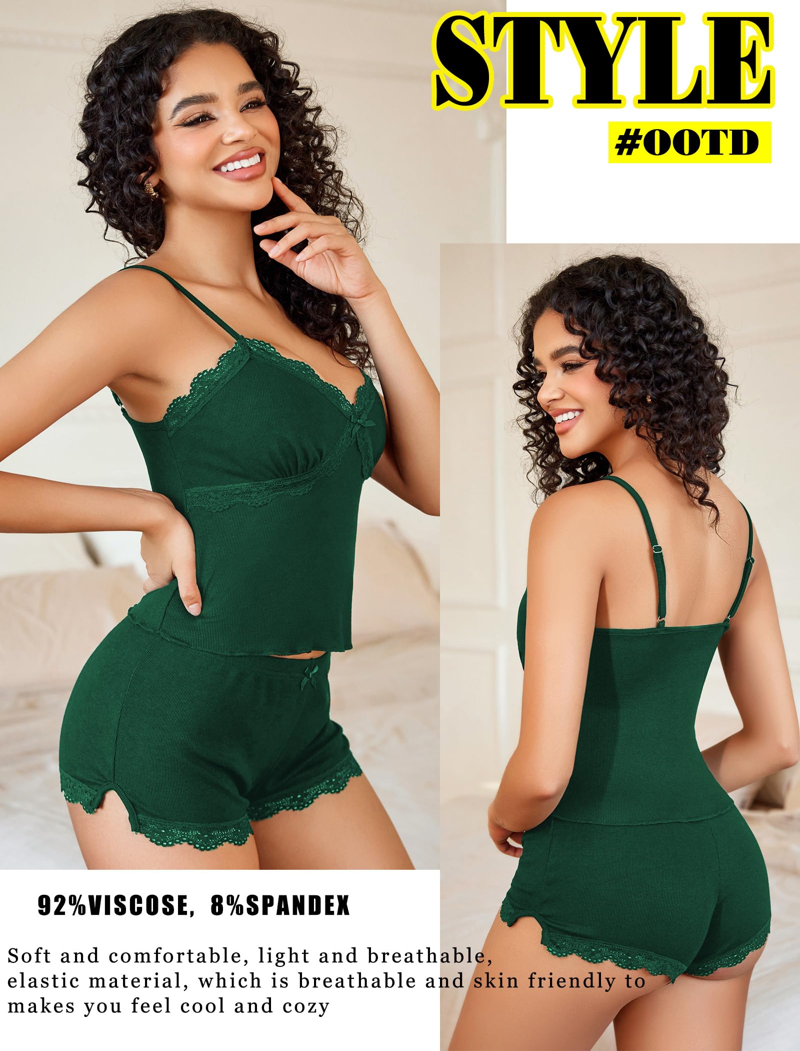 【Sexy Pajamas for Women】Sexy pajama set for women is made of 92% Viscose and 8% Spandex. Silky to the touch, super soft, sexy, breathable and comfortable, skin friendly, making you sleep well