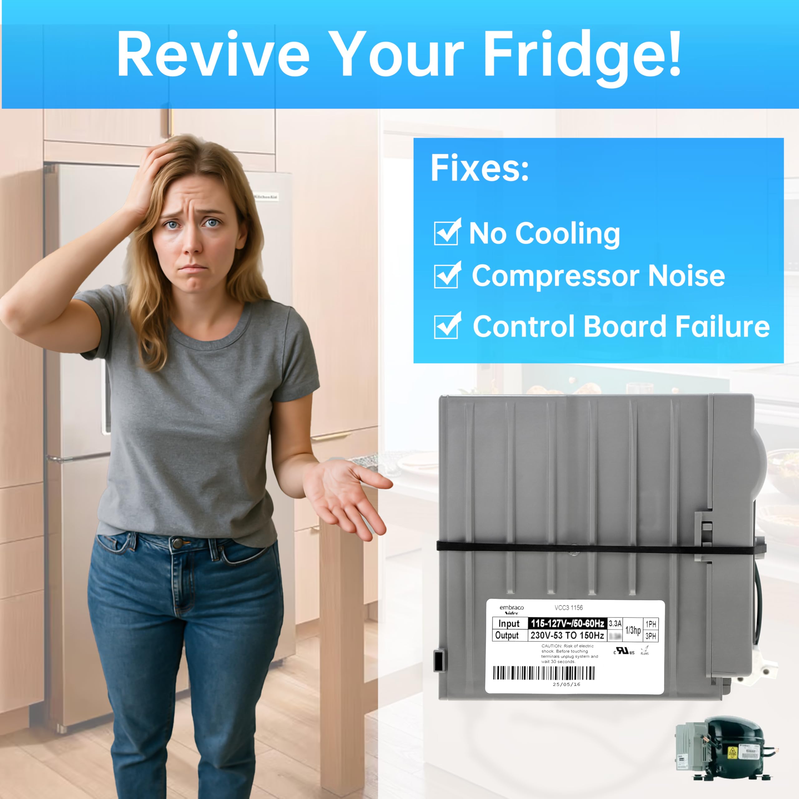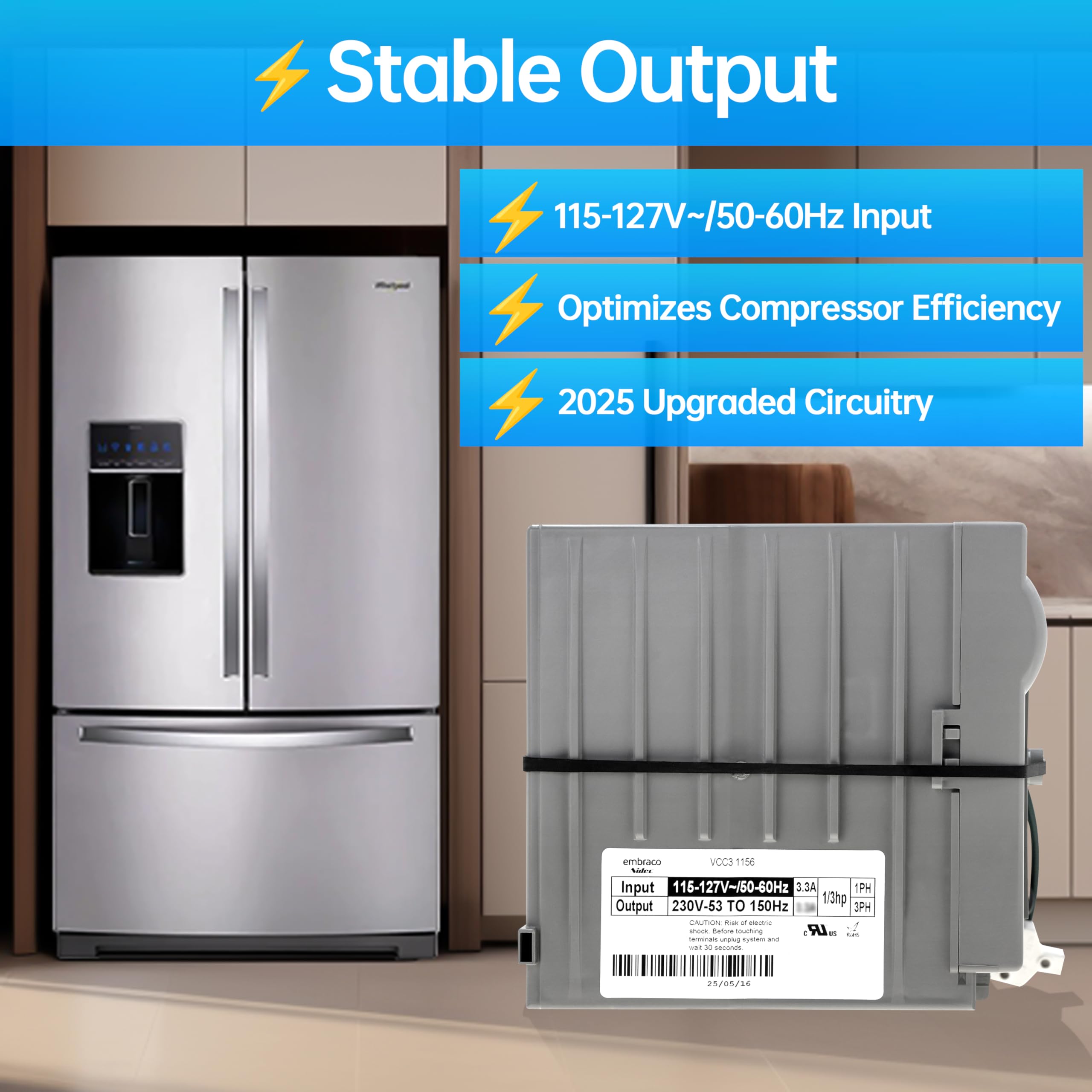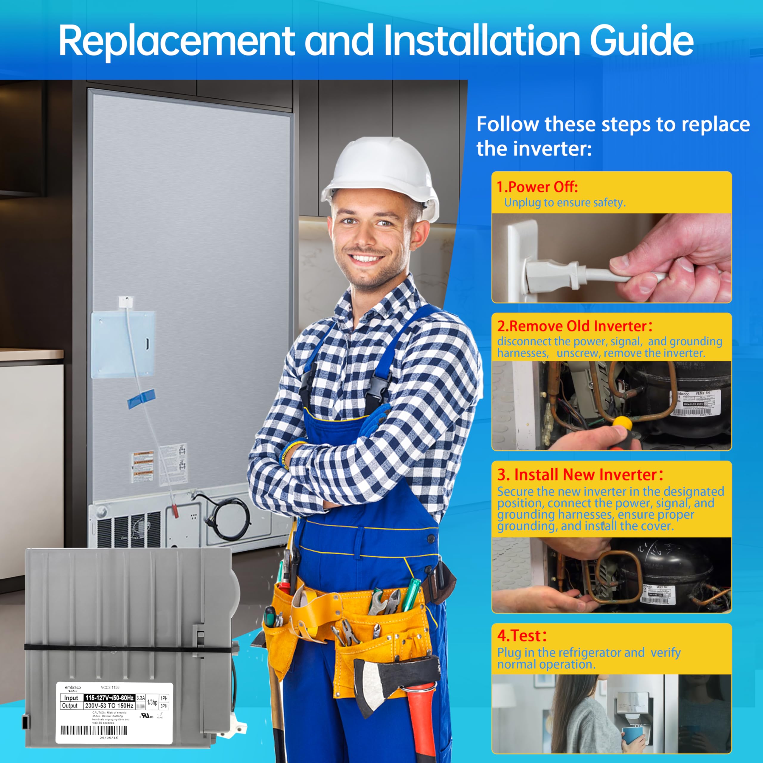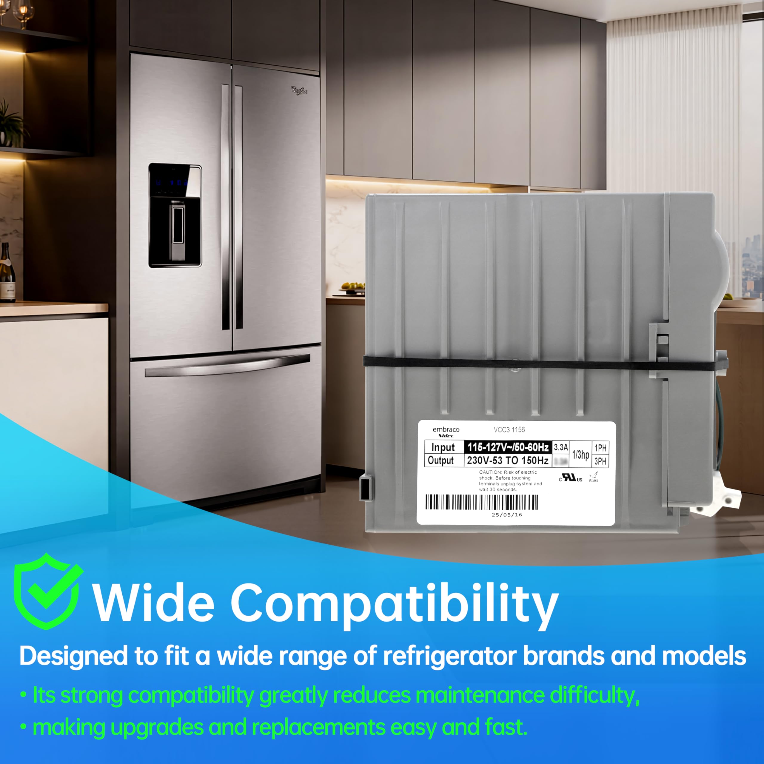Compatible: The 241577505 inverter board is a compact, lightweight replacement part designed to optimize refrigerator compressor performance; Compatible with Frigidaire Electrolux Whirlpool Kenmore models, it ensures seamless fit and energy-efficient operation, backed by durable construction from a trusted brand