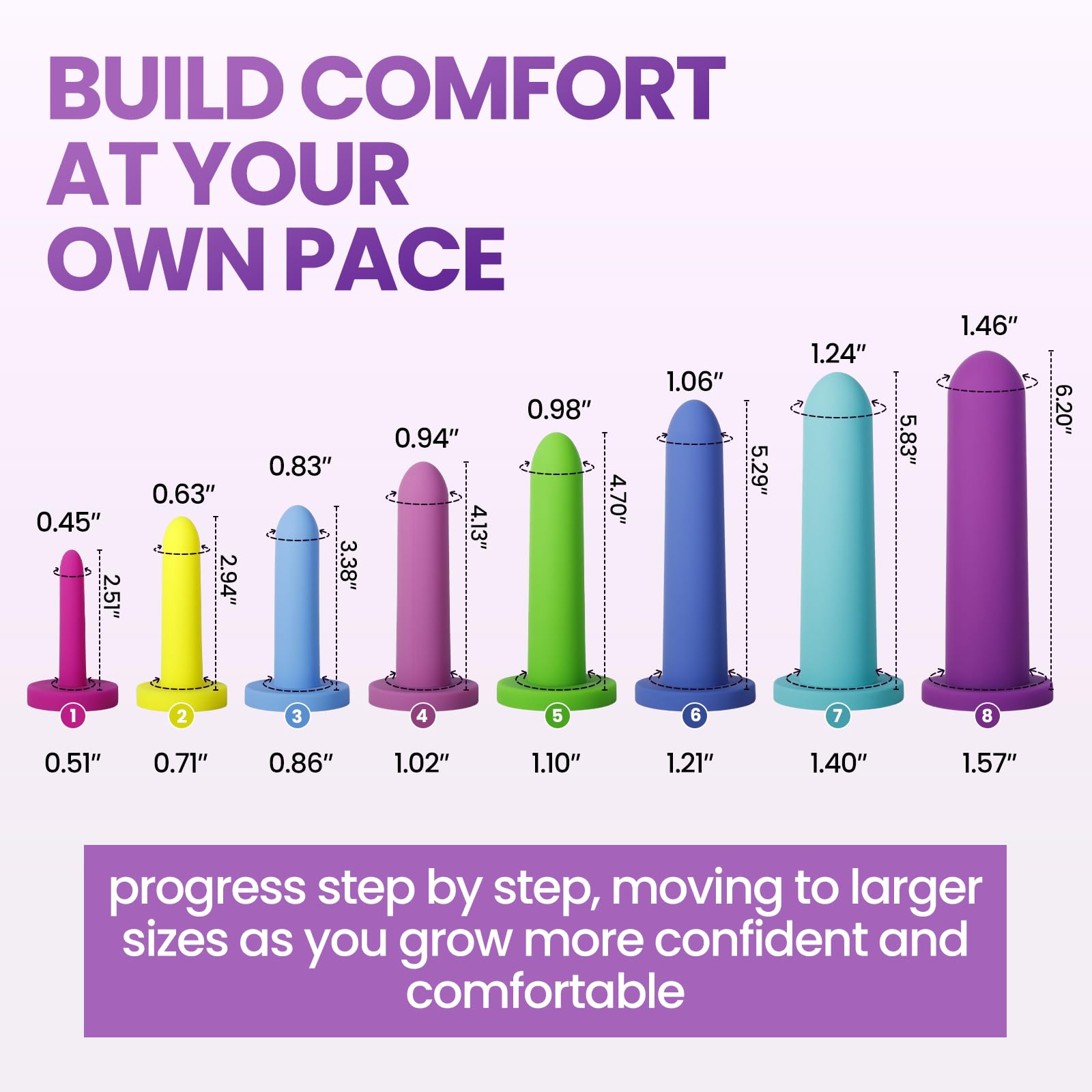 Experience the full system with all 8 gradually-sized tools (Sizes 1–8). Designed to support your flexibility, comfort, and confidence at every stage of your pelvic wellness journey. Perfect for paced, progressive training.