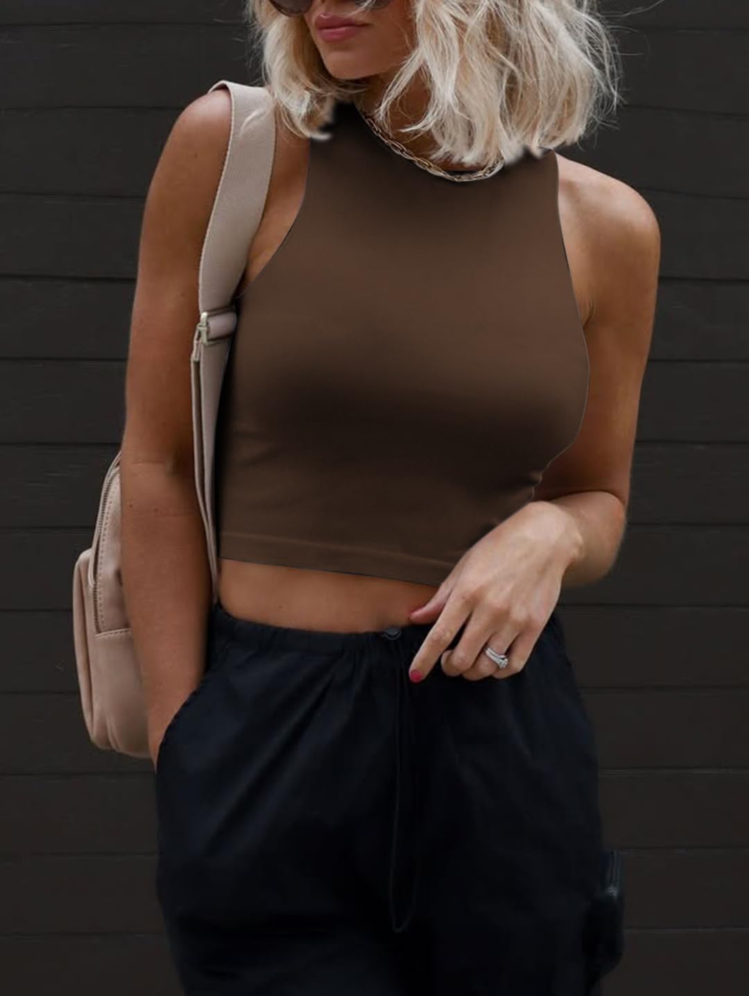 Fashion Design: Double layer of this crop top can wear without bra,and the material also good for work out sports,high neck design and crop top style,basic,fitted,casual style,crew neck ,sleeveless, slim fit