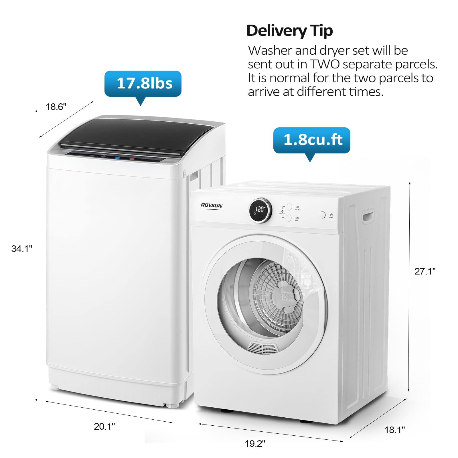 【Delivery Tip】Our washer and dryer sets will be sent out in two separate parcels. As the items may be sent from different warehouses, it is normal for the two parcels to arrive at different times. If you have any other questions, please do not hesitate to contact us and we will help you