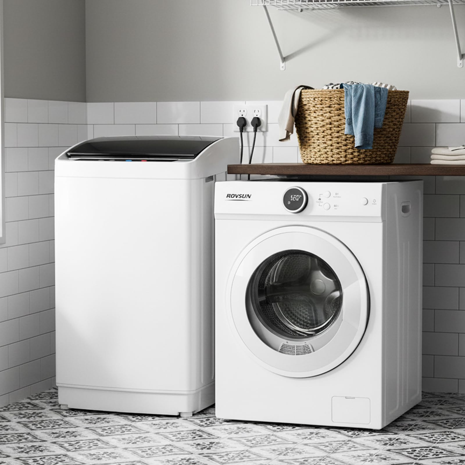 【Wash & Dry Efficiency】This washer and dryer combo combines a 17.8lbs fully automatic washing machine and a max 10.6lbs electric portable clothes dryer for seamless same-day laundry cycles. The washer's spin-dry function pairs with the dryer's 1020W power and 140°F heat to eliminate damp waits—perfect for rainy days or busy schedules. Wash, dry, and wear your favorite outfits all in one day! (NOTE: for quick drying, no more than 6.6 pounds of clothes at a time)