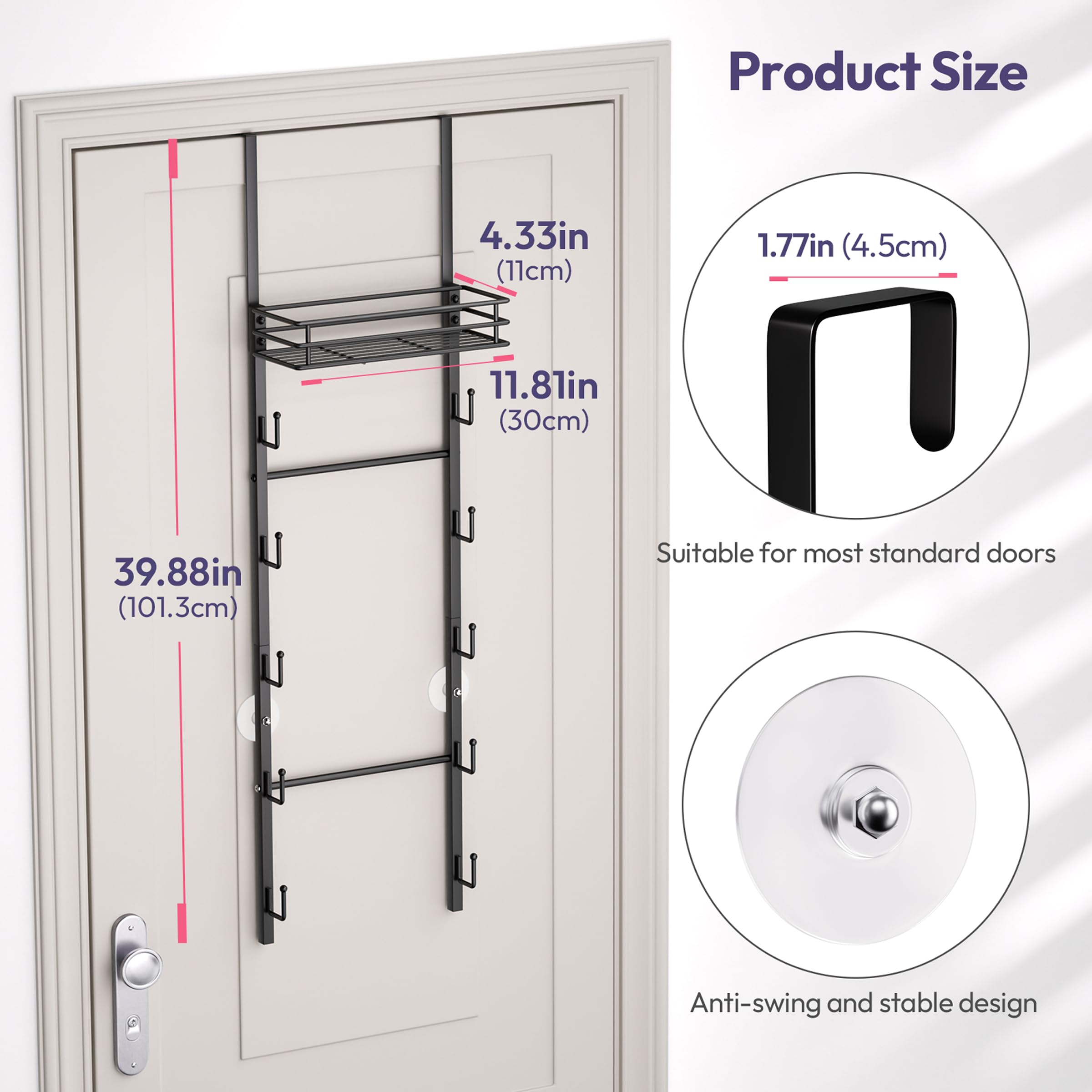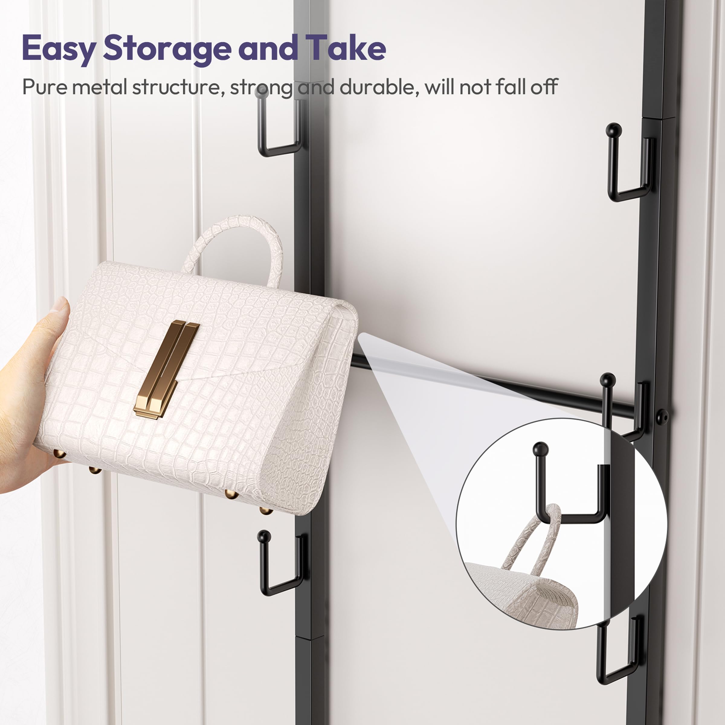 [Secure and Stable]: The over the door handbag organizer includes anti-sway adhesive pads prevents swinging or sliding. Use it as a purse holder for closet or a dependable vertical rack—it keeps everything in place, whether holding a small purse organizer or larger totes