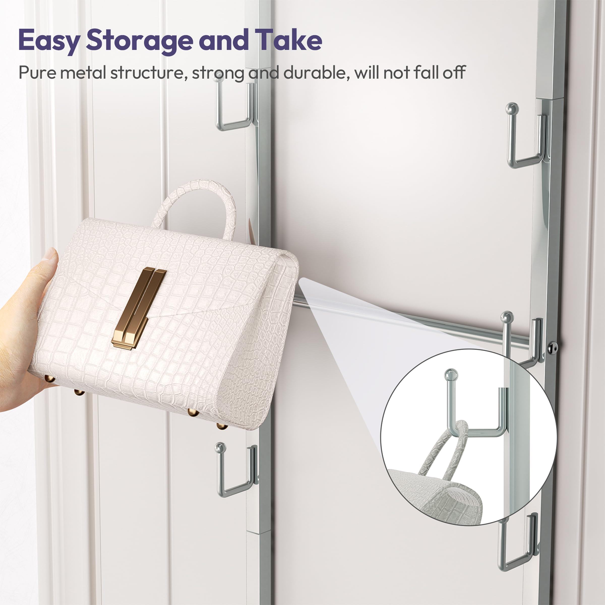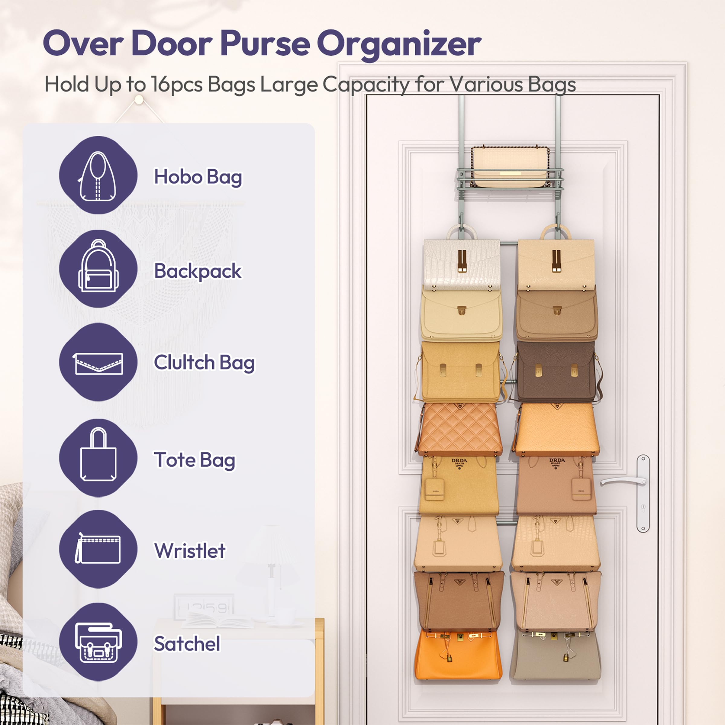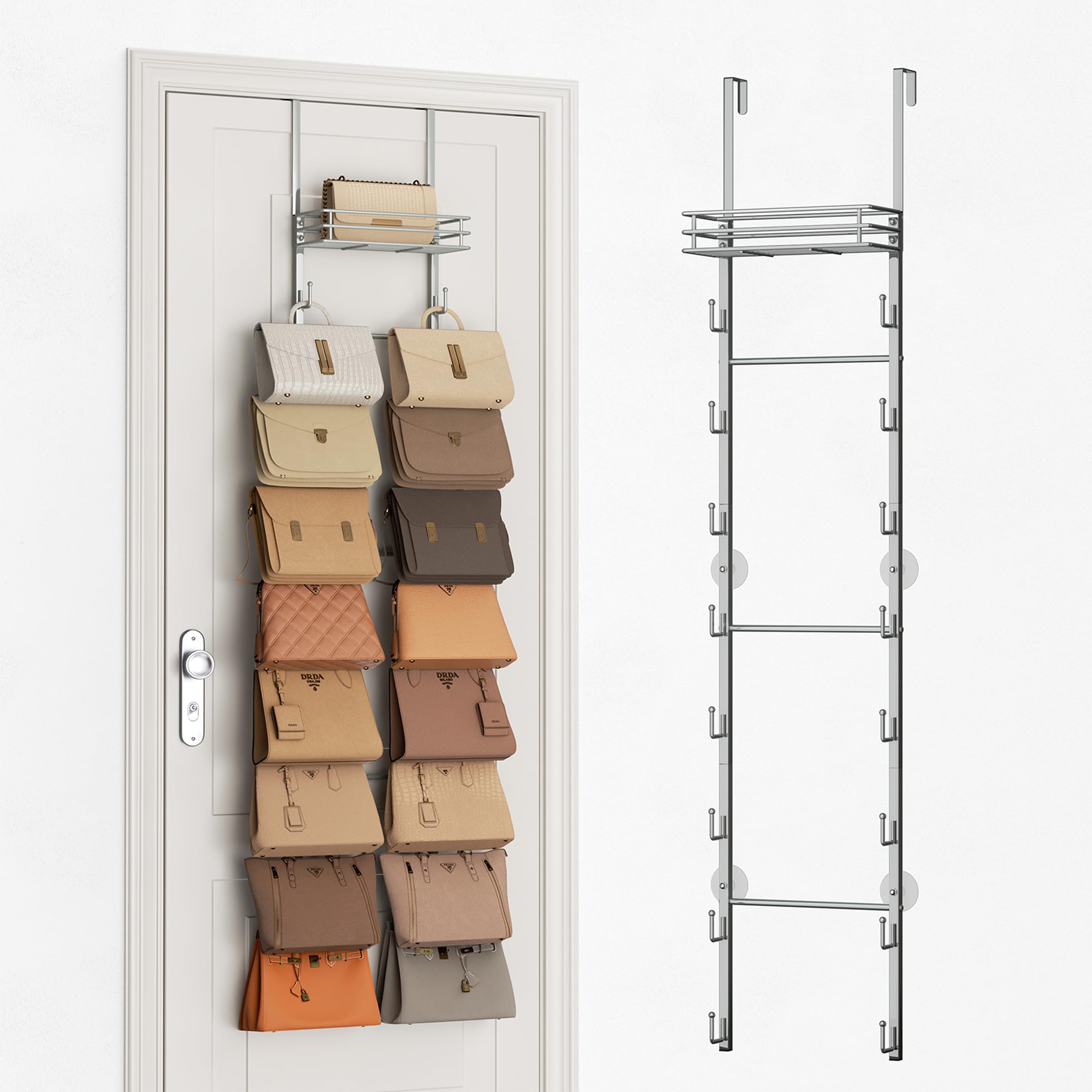 [Secure and Stable]: The over the door handbag organizer includes anti-sway adhesive pads prevents swinging or sliding. Use it as a purse holder for closet or a dependable vertical rackβit keeps everything in place, whether holding a small purse organizer or larger totes