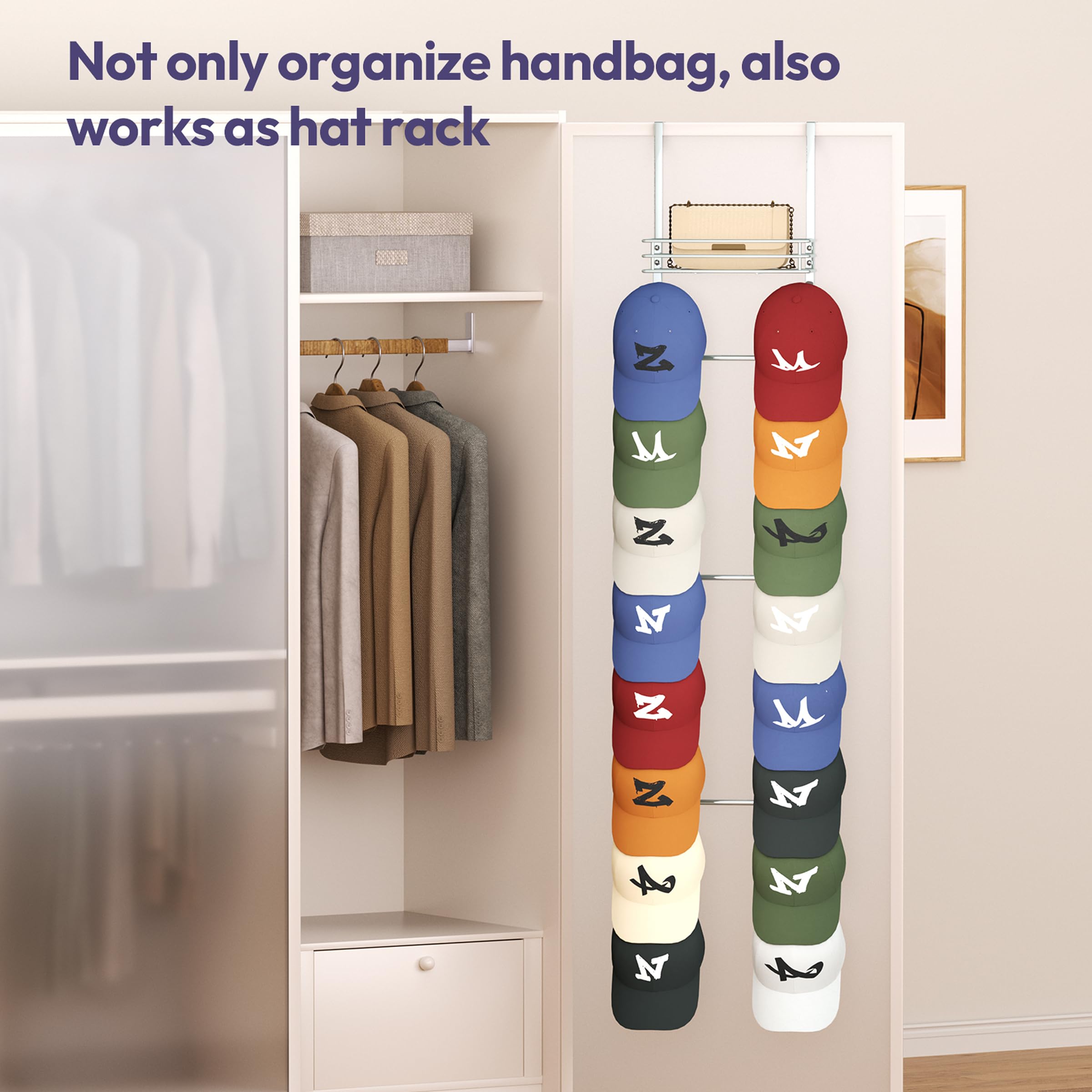 [Multi-Use Storage Option]: More than a handbag organizer, also work as hat rack, coat rack to stores hats, scarves, and even belts. Say goodbye to clutter with this functional purse rack, designed for those who love clean spaces. It's not just a rackβit's also a stylish purse shelf display that enhances any wall or door