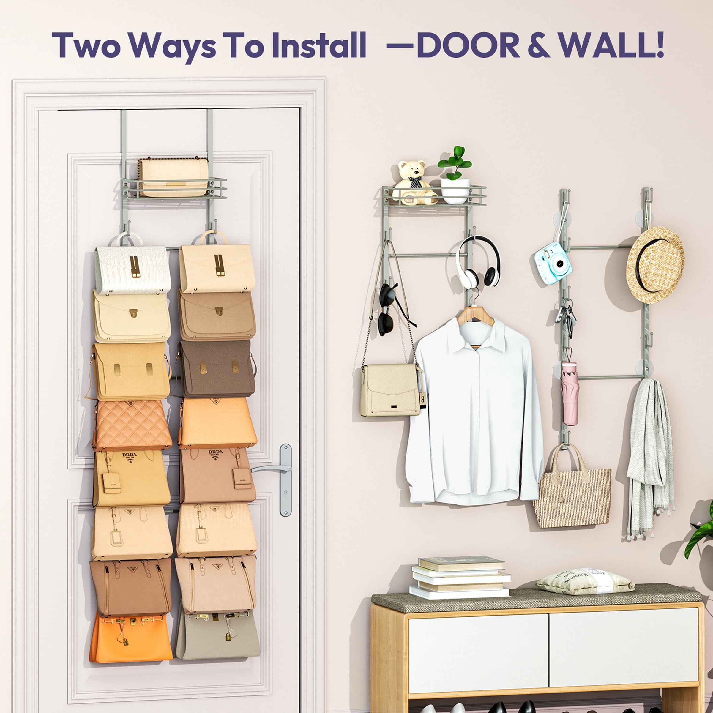 [Dual Installation Modes]: Choose what works for youβhang it over the door or mount it on the wall. This purse storage adapts to your space and style. Whether you're organizing everyday bags or weekend totes, this heavy-duty handbag storage system serves as a durable and elegant purse holder for homes, dorms, and studios