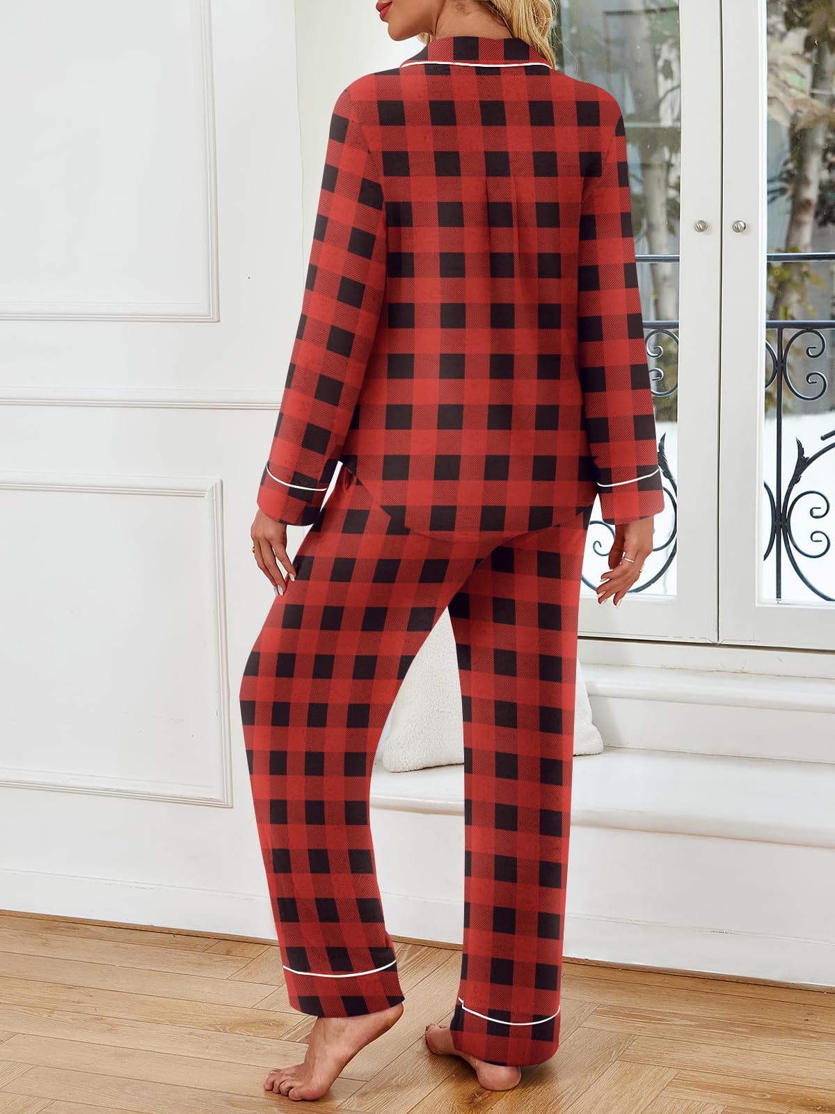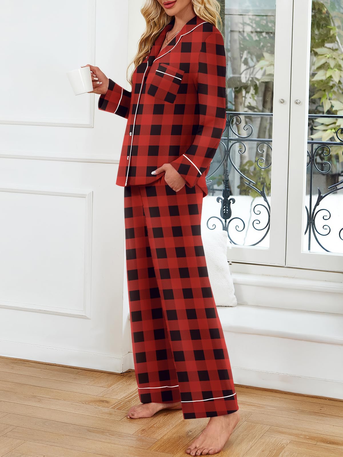 Womens Pajamas Sets Long Sleeve Lounge Warm Sleepwear 2 pieces Fall Clothes With Pockets