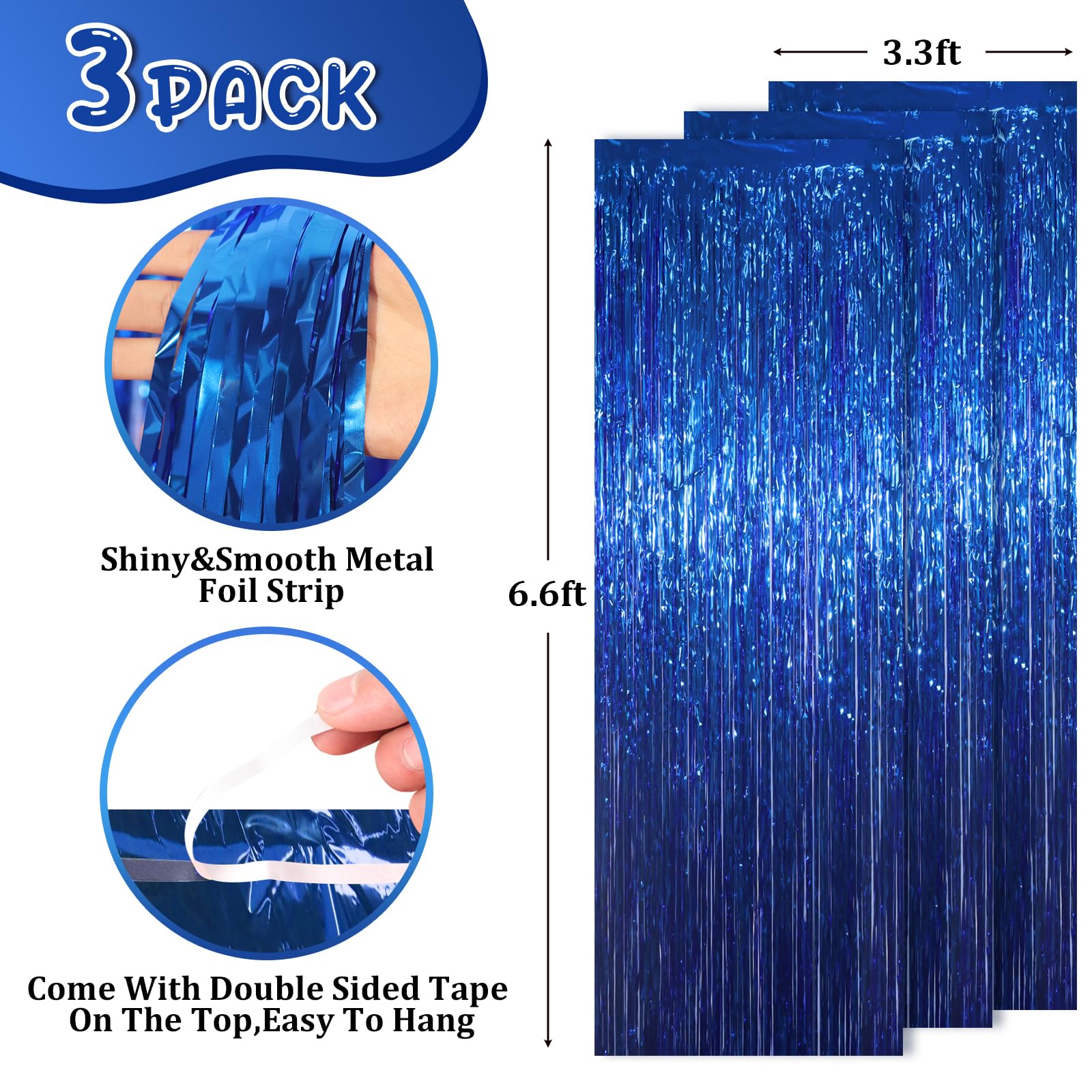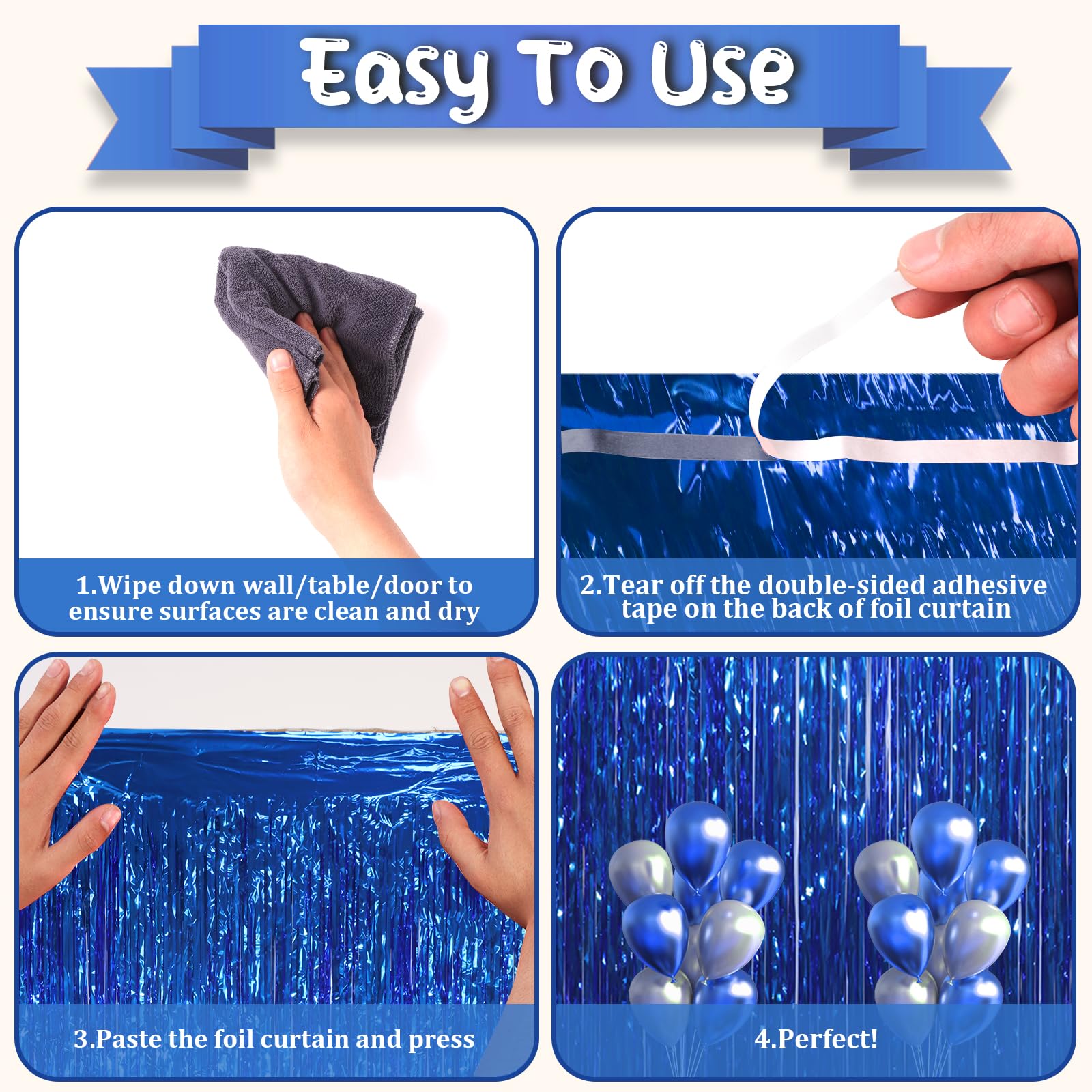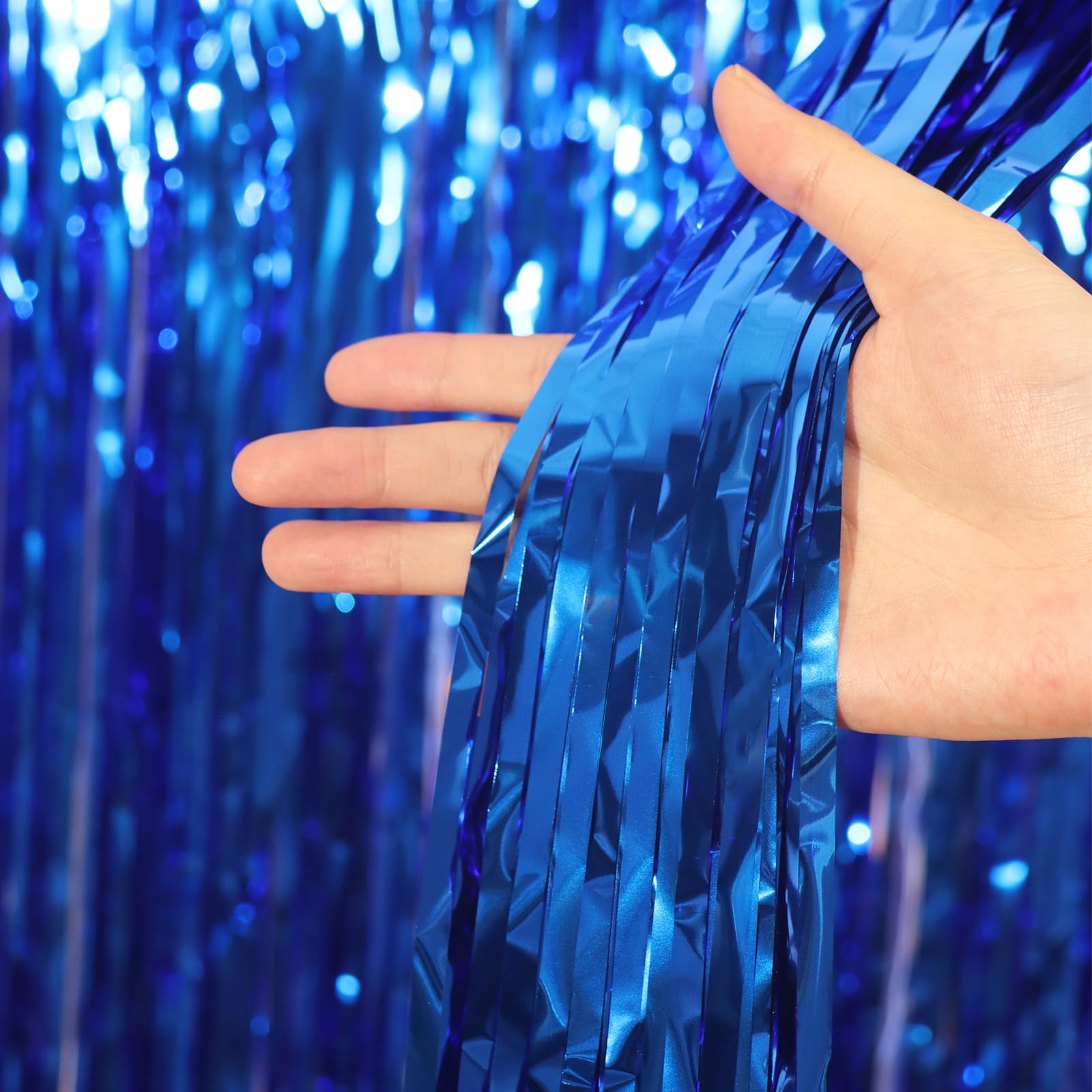 Premium Material: This blue foil curtain backdrop is made of stable tinsel, non-fading, stay shiny and reusable. Unfold it and then enjoy your glittering party