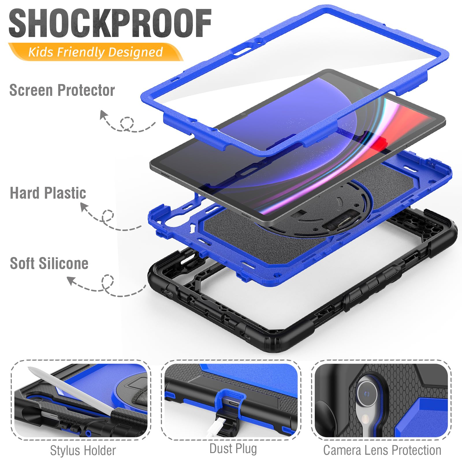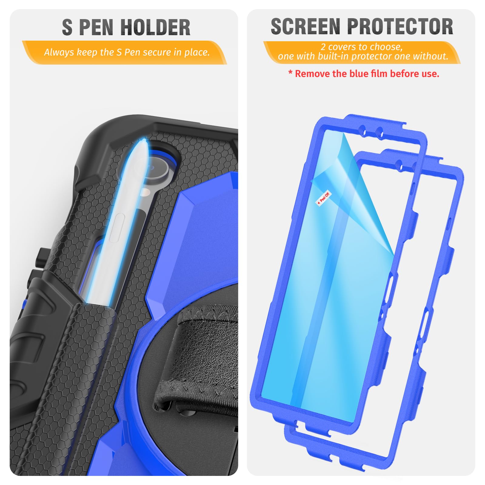 Shockproof & Screen Protector — This Galaxy Tab S10 lite 5G case designed with durable anti shock material, built-in screen protector (2 covers to choose, one with built-in screen protector and one without), strong protection always keep your 10.9'' tablet safe from shock, drop, scratches in daily use.