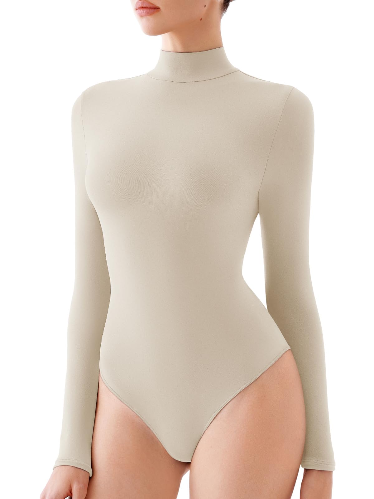 🌸Features: This basic long-sleeve bodysuit features a turtle neck that enhances your neckline, providing a sleek and elegant look. The high-stretch, body-hugging fabric highlights your curves, making you feel sexy and confident. It is equipped with two durable snap buttons at the crotch for easy wear and a secure fit. The high-quality fabric and classic design make this turtleneck bodysuit perfect for both formal and casual settings, embodying elegance in simplicity.