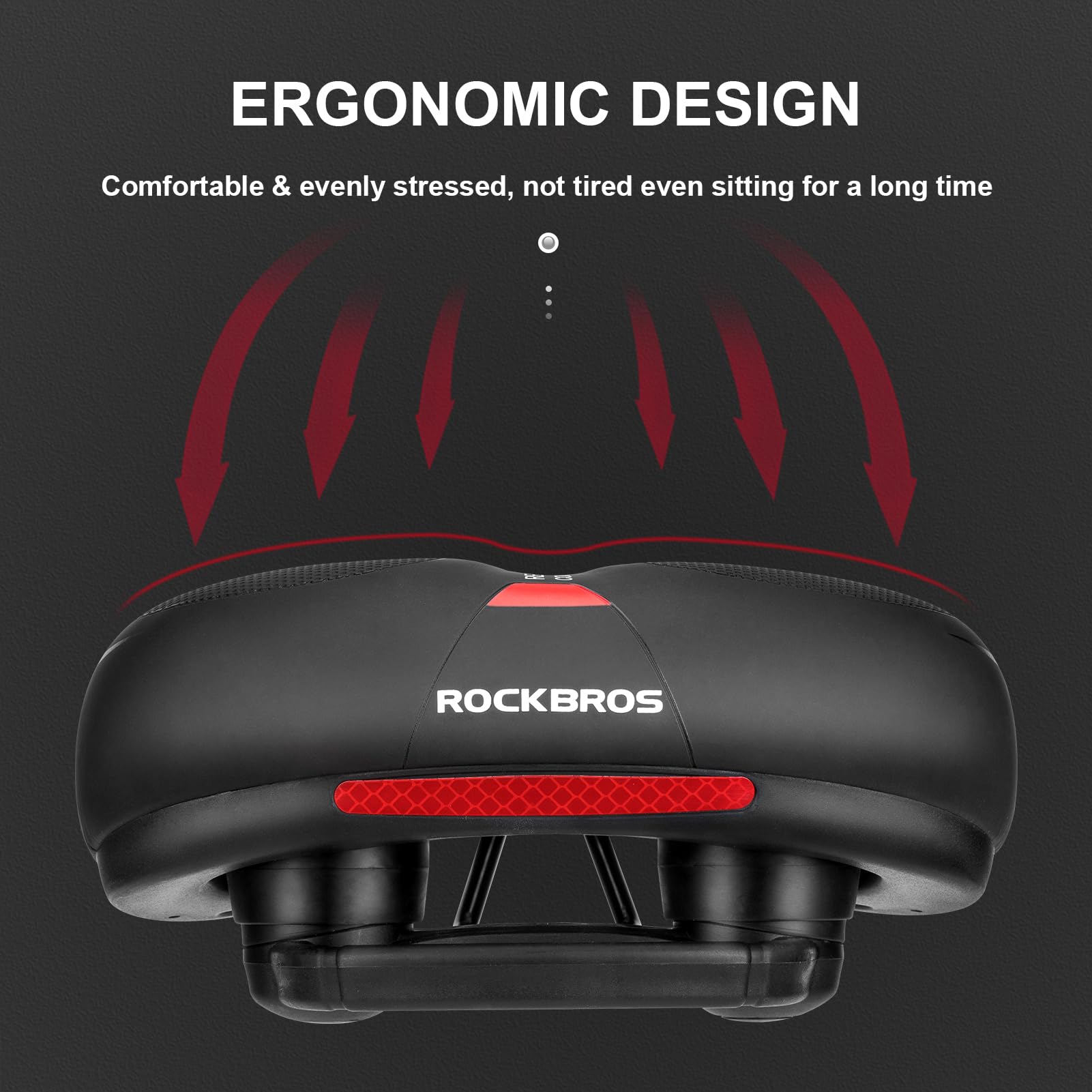 ★COMFORTABLE & BREATHABLE: ROCK BROS Comfort bike seat padded with thicken high-density memory foam, good elastic and very soft, not only protect the buttocks well but also make you feeling comfortable during cycling.What’s more, Plus hollow design in the middle make it more breathable