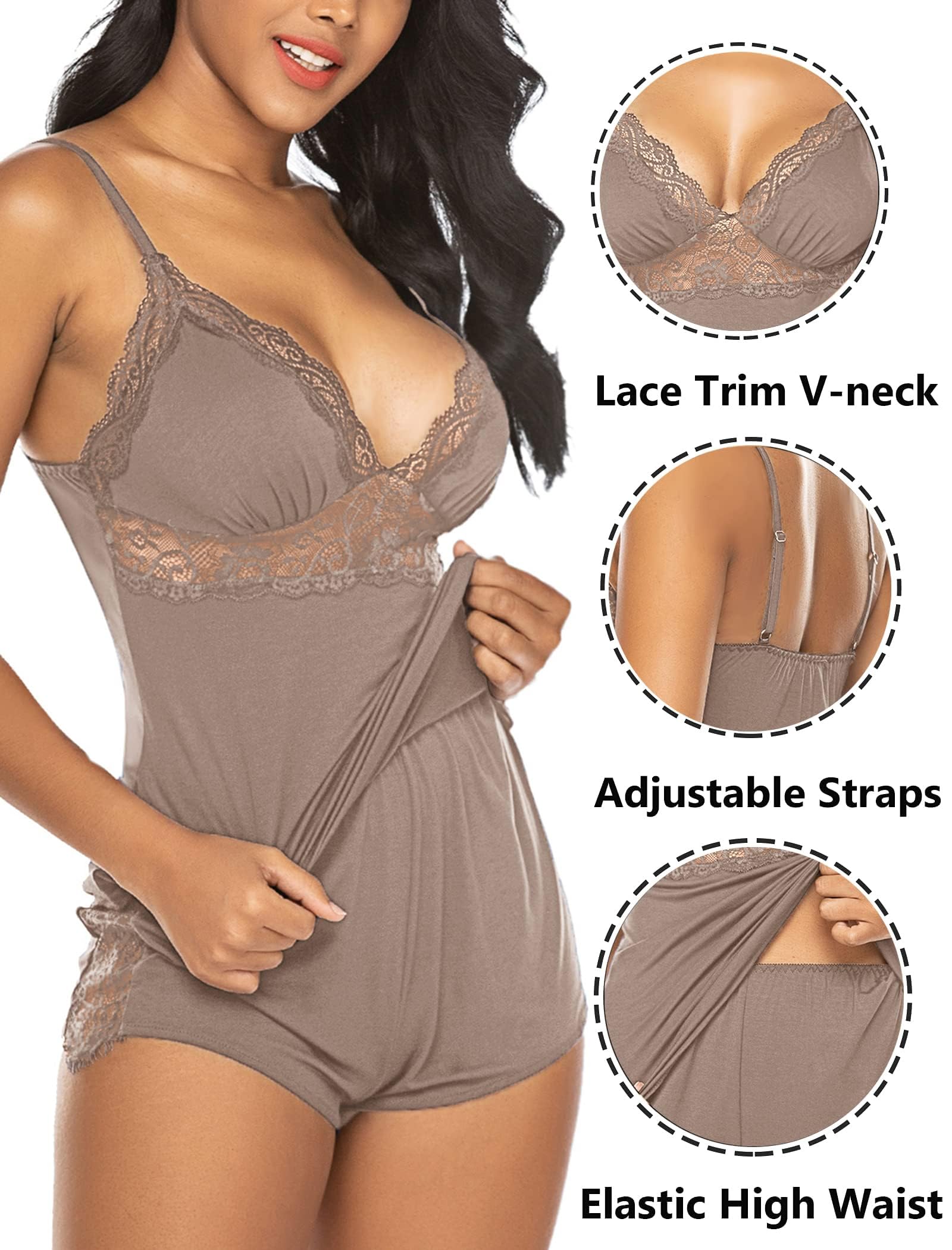 📏Model-Specific Sizing Reference:Our Model (Size:S): Height 5'9, Bust 36", Waist 24", Hips 36". Package: 1 cami + 1 shorts. Follow your usual US sleepwear size – detailed measurements in images.
