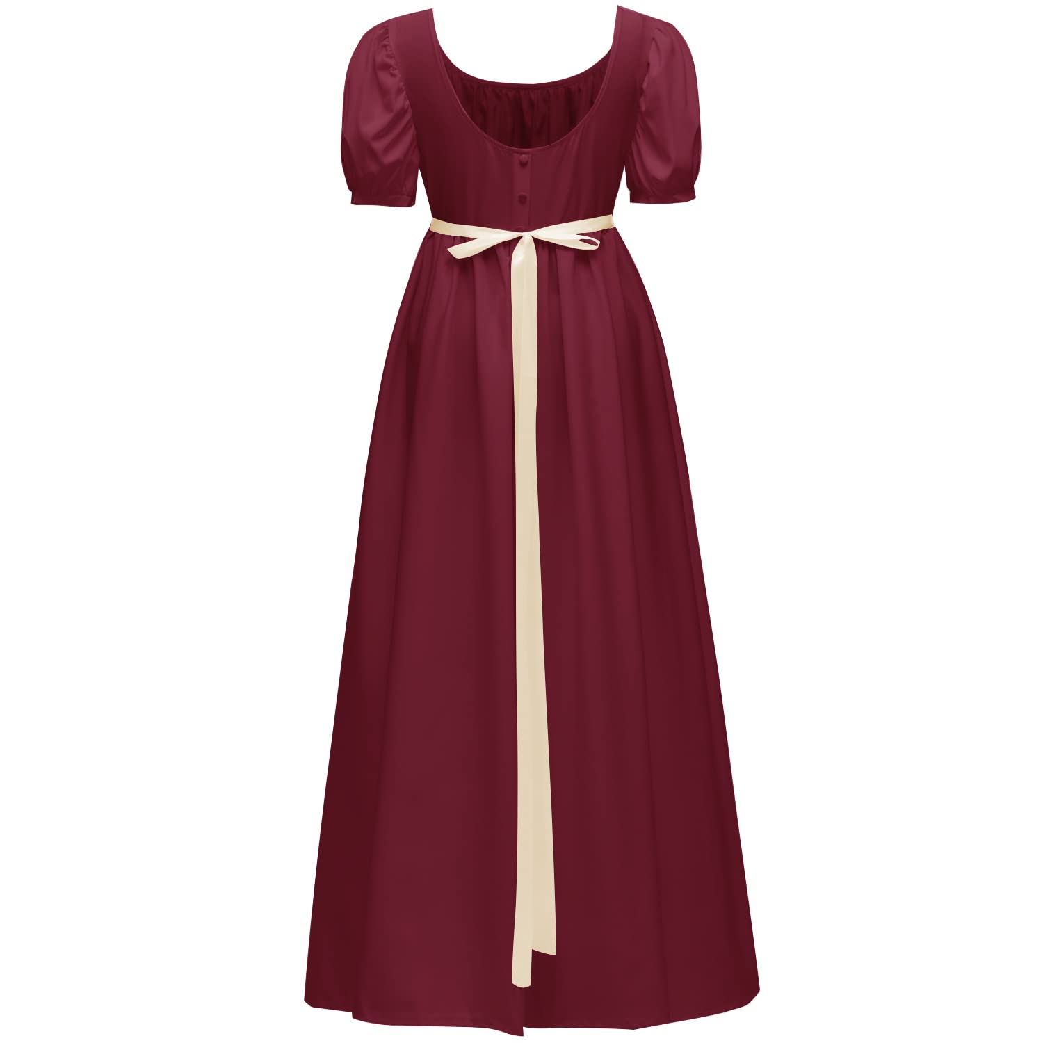 Distinctive Design: This regency dresses dressed up with removable sash decorated, puff sleeves, U-Back design, high waist design, sleeves and waist are gathered with drawstrings. The dress is suitable to be a Jane Austen dress, church dress, victorian empire gown, early victorian dress, even daily wear dress.