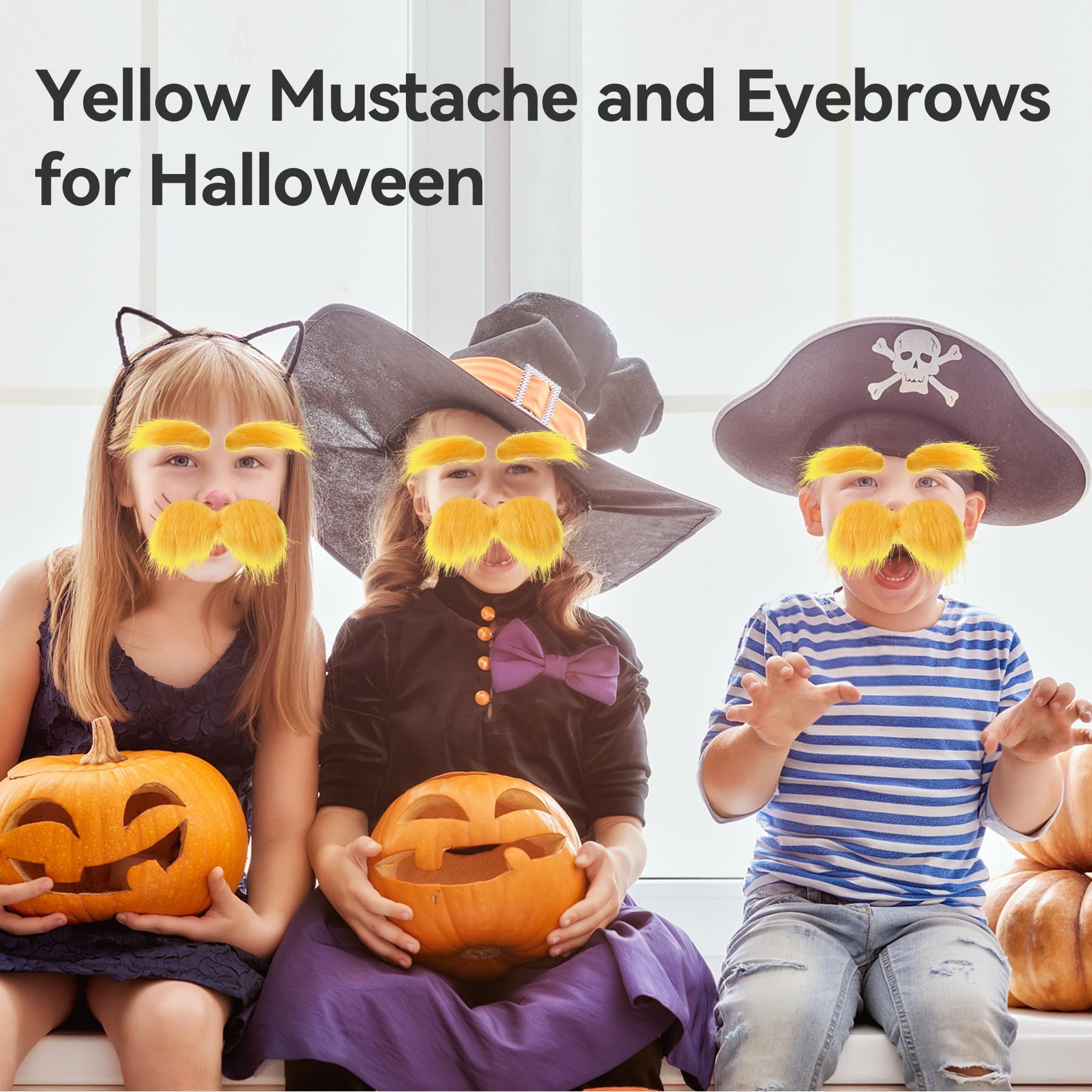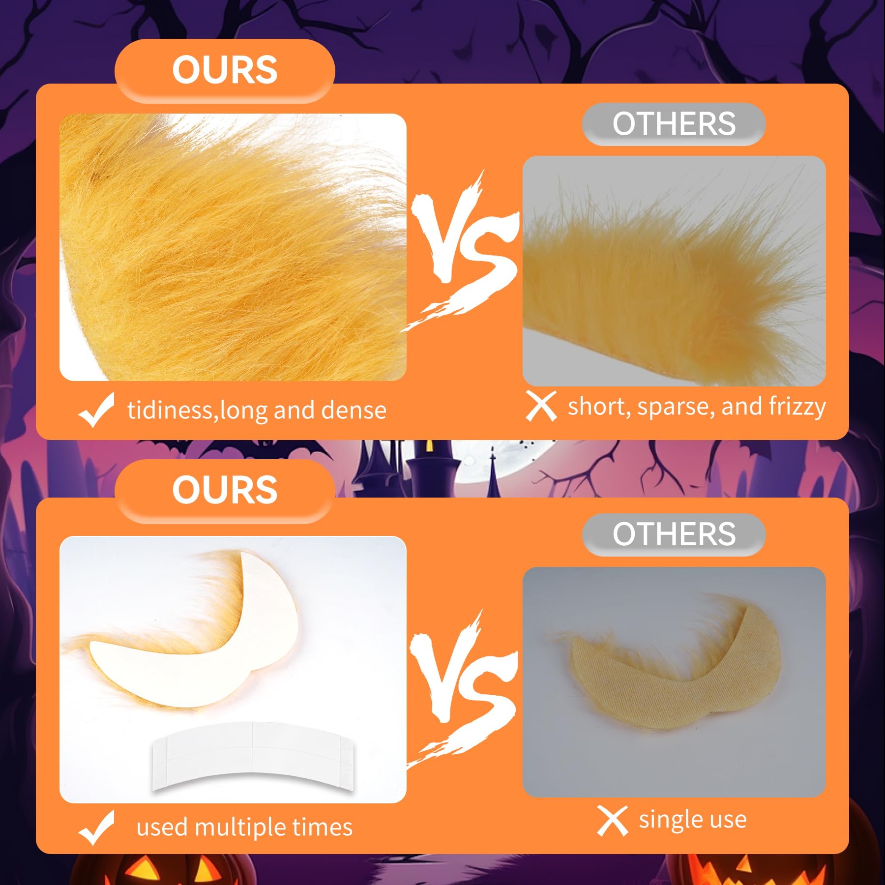 【Yellow Mustache Kit】Comes with 2 different styles of yellow mustache and eyebrows, and 2 pcs of large spare double-sided mustache tape, which can guarantee the second use of the mustache to play more roles and attract attention.