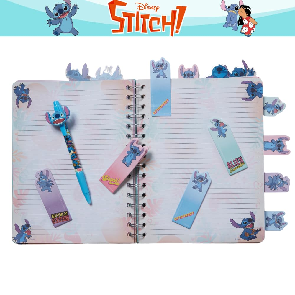 CUSTOMIZABLE NOTEBOOK β customize and organize your spiral journal with the stitch themed sticky notes! Place tabs along the edges of pages to mark new sections, acting as dividers for various topics or subjects.
