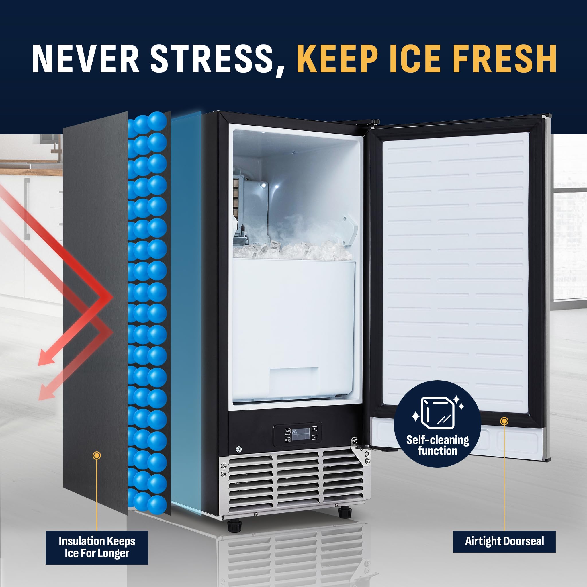 [FINGERPRINT RESISTANT DOOR] - The stainless steel door is fingerprint-resistant, so this clear ice maker is ready for duty in your home bar.
