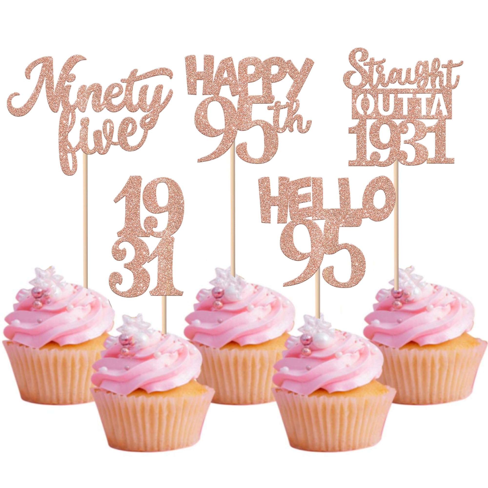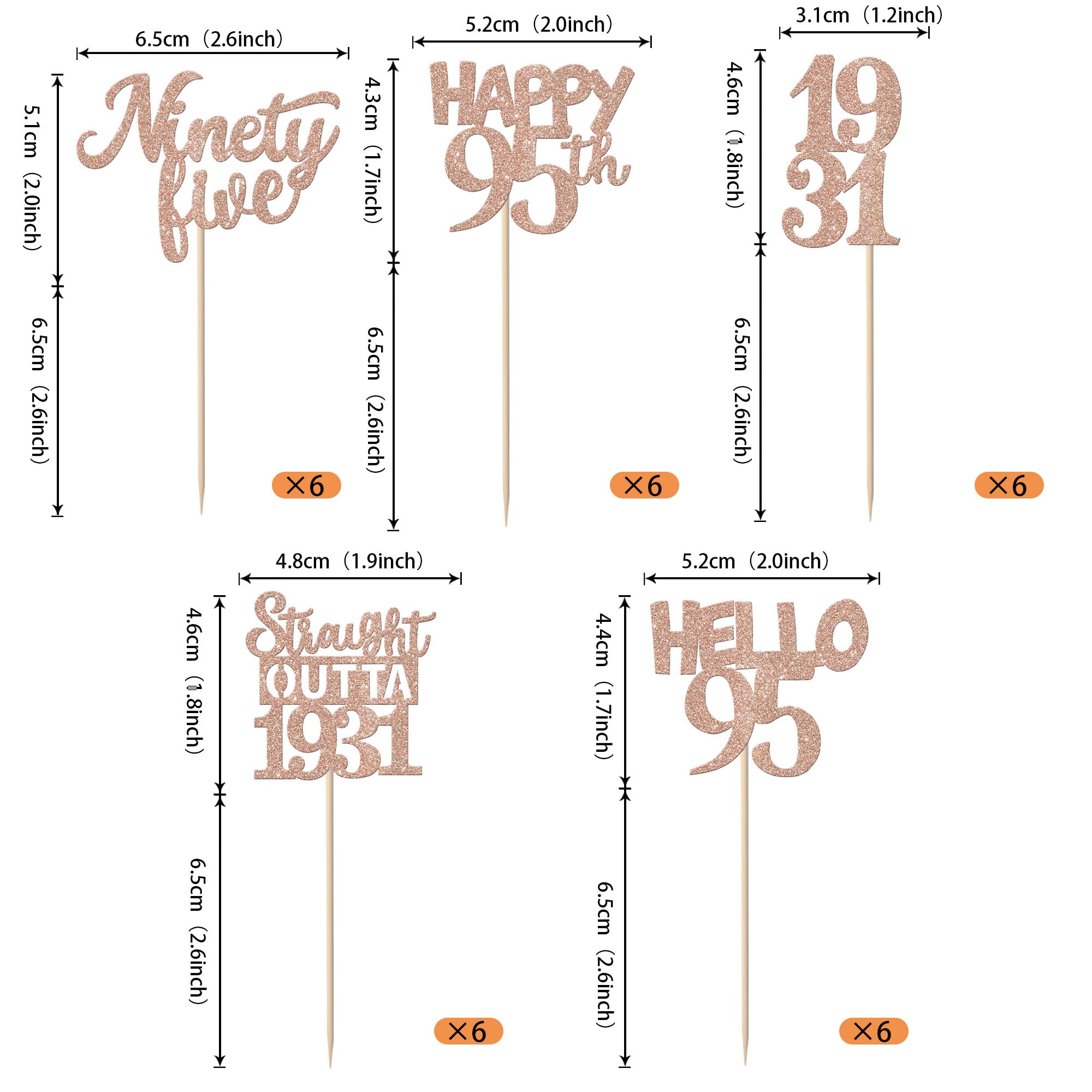 Straight Outta 1931 Cupcake Toppers for Happy 95th Birthday Anniversary Party Cake Decorations Supplies Perfect for happy 95th bithday theme party,straight outta 1931 theme party,95th wedding anniversary theme party,cheers to 95 years theme party cupcake decorations supplies. Pack of 30 pcs,6 pcs of each design The size is 1.9*4.6 inch / 1.3*3.9 inch / 2.1*4.6 inch / 2.7*4.5 inch / 2.2*4.5 inch ( with stick ) Made of high quality paper card stock ,thick and thick and sturdy. These cupcake toppers are single glitter, the back is white, and they are intended for decoration only, please do not put them in oven or microwave. If the item you received has any defects, please contact us.we will deal with it within 24 hours.