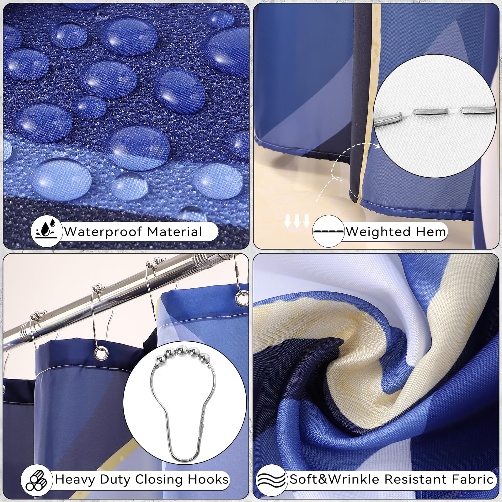 ใ๐๐ ๐๐ญ๐ซ๐ข๐ฉ๐ ๐๐ข๐ง๐ญ๐ข๐ง๐ ๐๐ก๐จ๐ฐ๐๐ซ ๐๐ฎ๐ซ๐ญ๐๐ข๐งใMade of soft and high quality polyester cloth, which is waterproof, durable and long-lasting use. The blue printed shower curtain is waterproof and dries quickly, making it suitable for use in damp bathrooms. Unique design just like a realistic landscape. helping you to enjoy pleasant bath time.