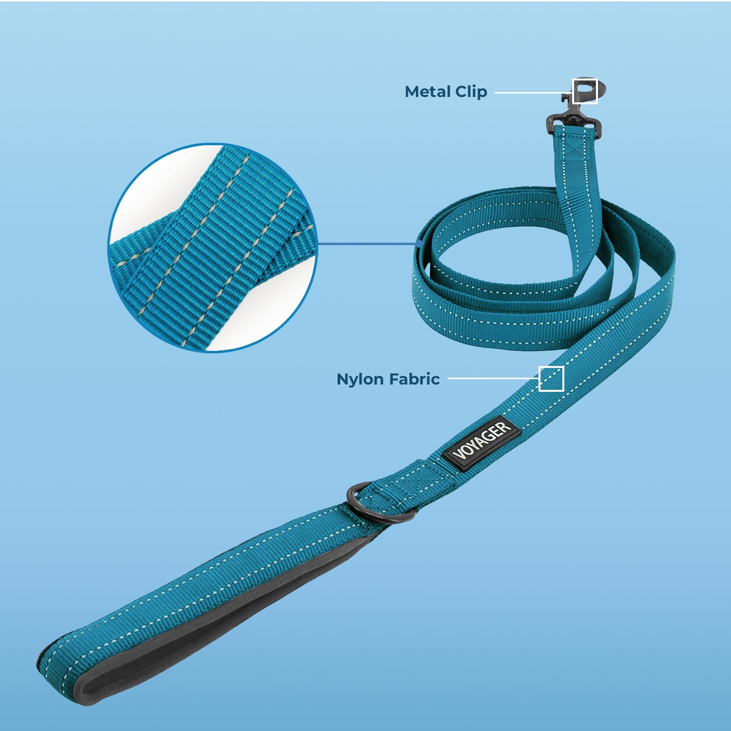 Premium cushioned materials including neoprene and nylon with reflective stitching to ensure safety and security on every walk