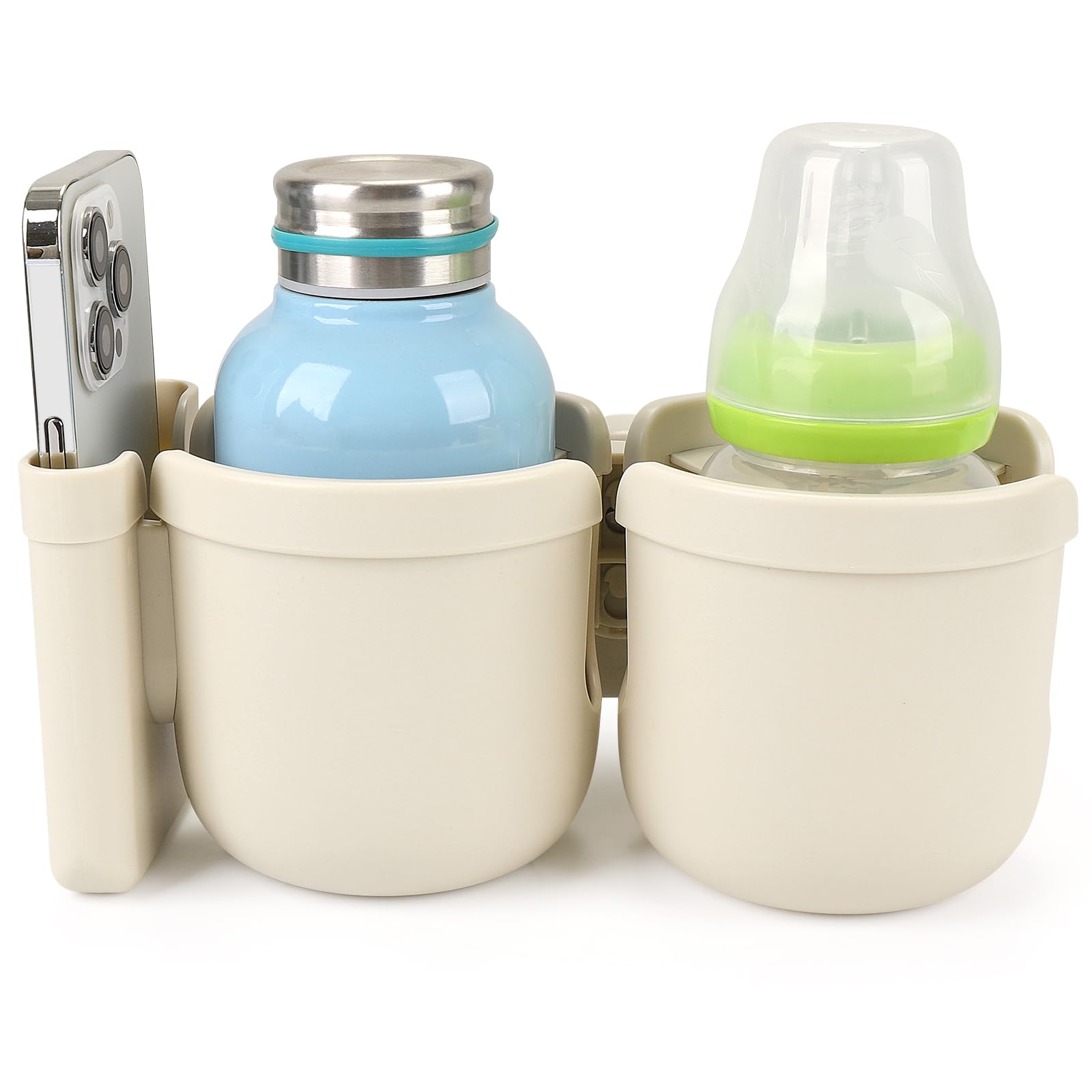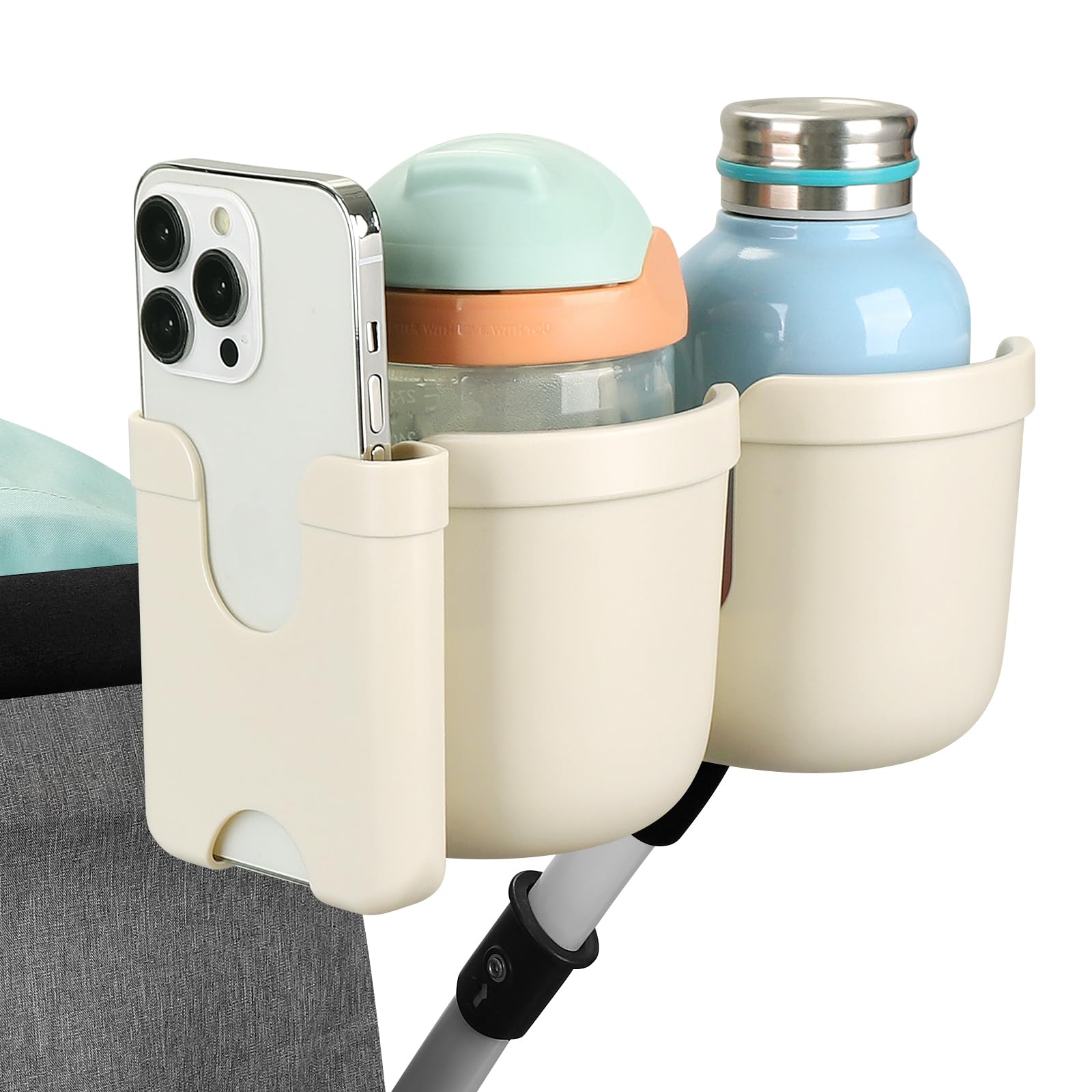 This 2-in-1 stroller cup holder with a phone holder, it can load drinks bottles and cell phone at the same time. You can see new messages, incoming calls in the first time when you are pushing a stroller or running on a treadmill. It is applicable to most cell phones on the market.