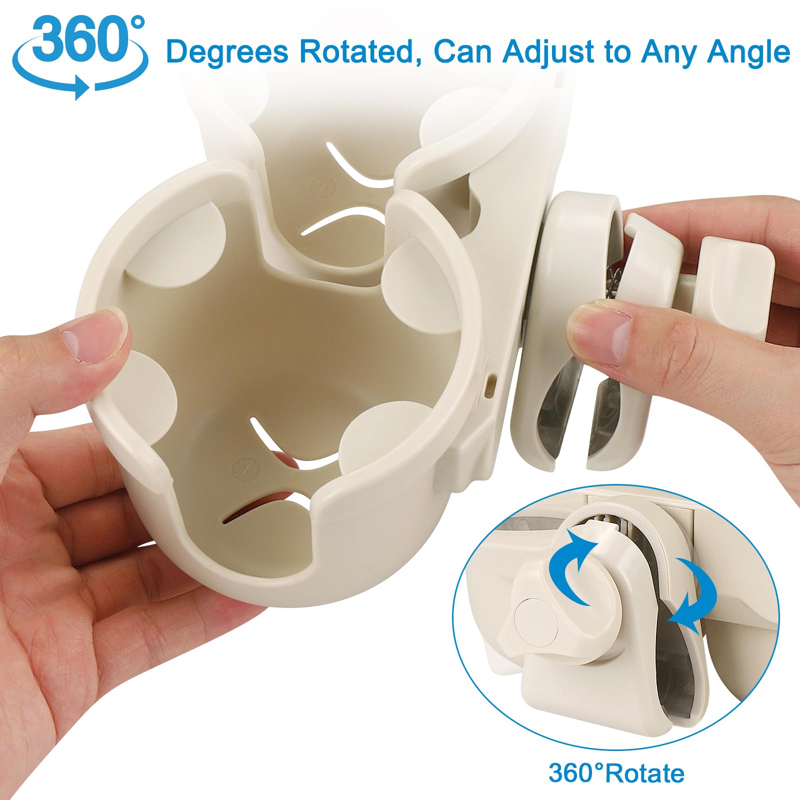 Easy to Use: This stroller cup holder attachment is made of durable materials. The ABS plastic and slip resistant rubber ensure the bottle keep steady even on the rough road. It is a "clip on" cup holder, you just need to clamp on anywhere you like. Easy to install or remove.
