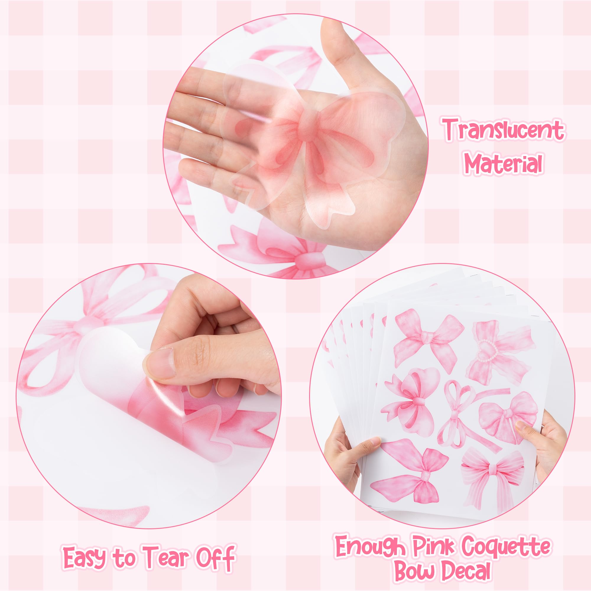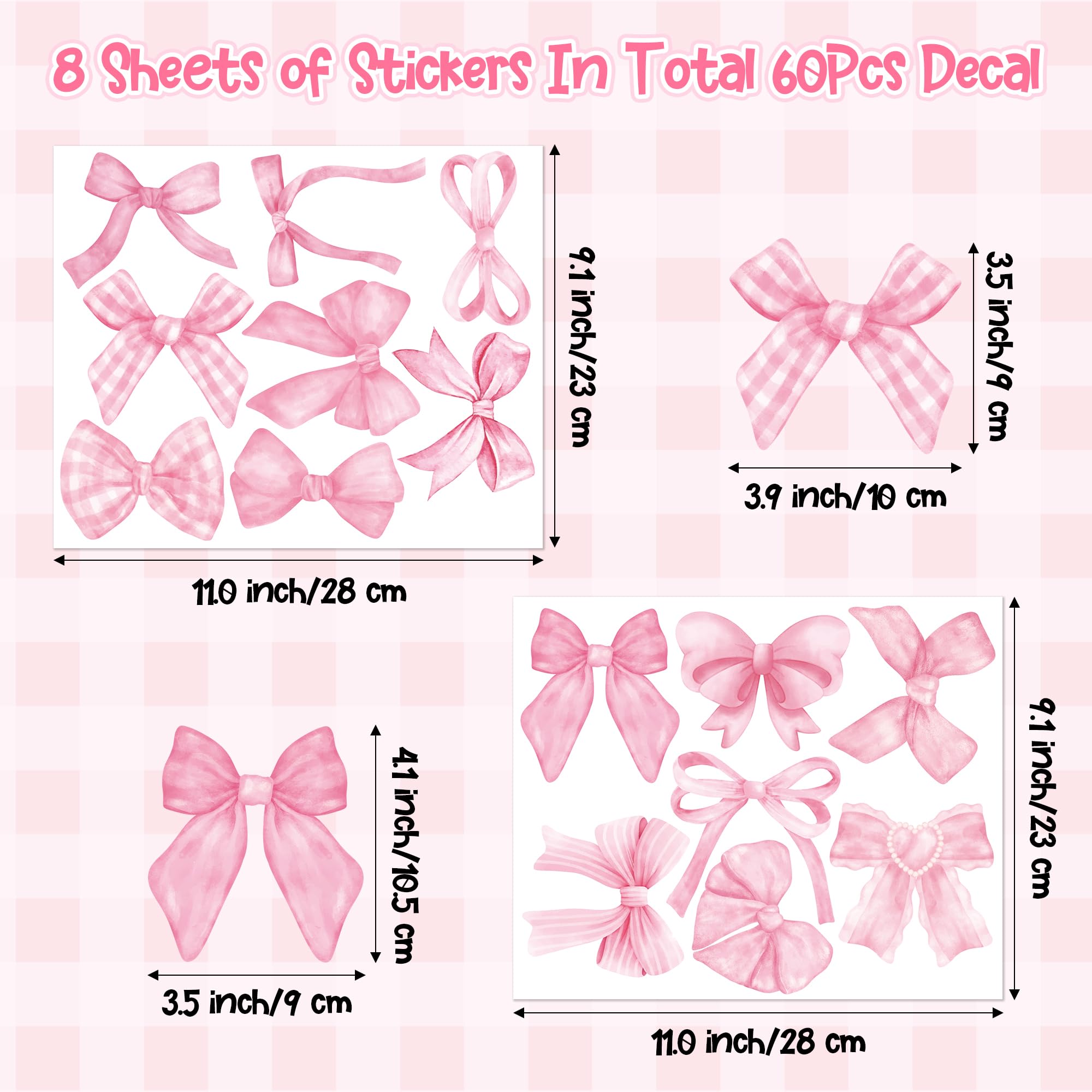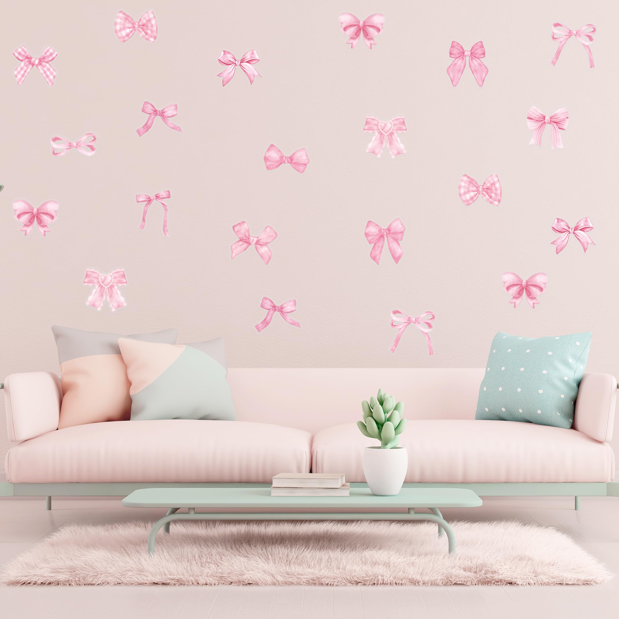 Delicate Watercolor Pink Bow Design: These wall stickers feature a delightful combination of pink bow tie elements. Their adorable Coquette aesthetic strikes a perfect balance between minimalism and cuteness, making them a stylish addition to any wall.