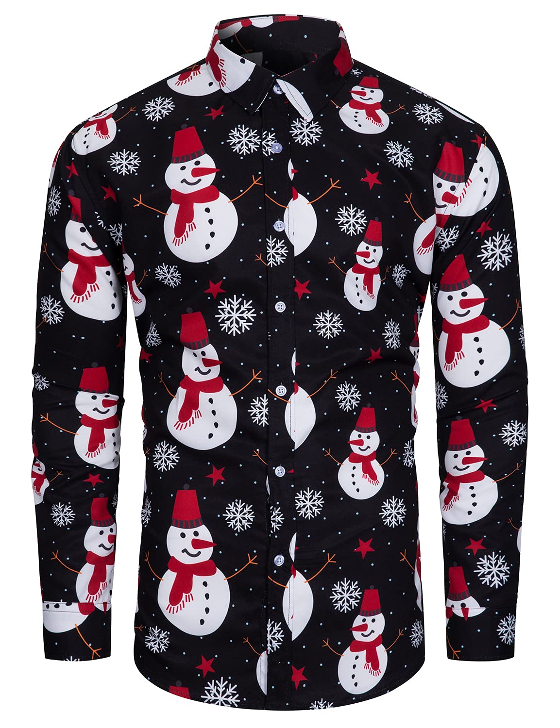 Twill cotton fabric,button front shirt featuring long sleeves and adjustable cuffs, Xmas elements prints all over