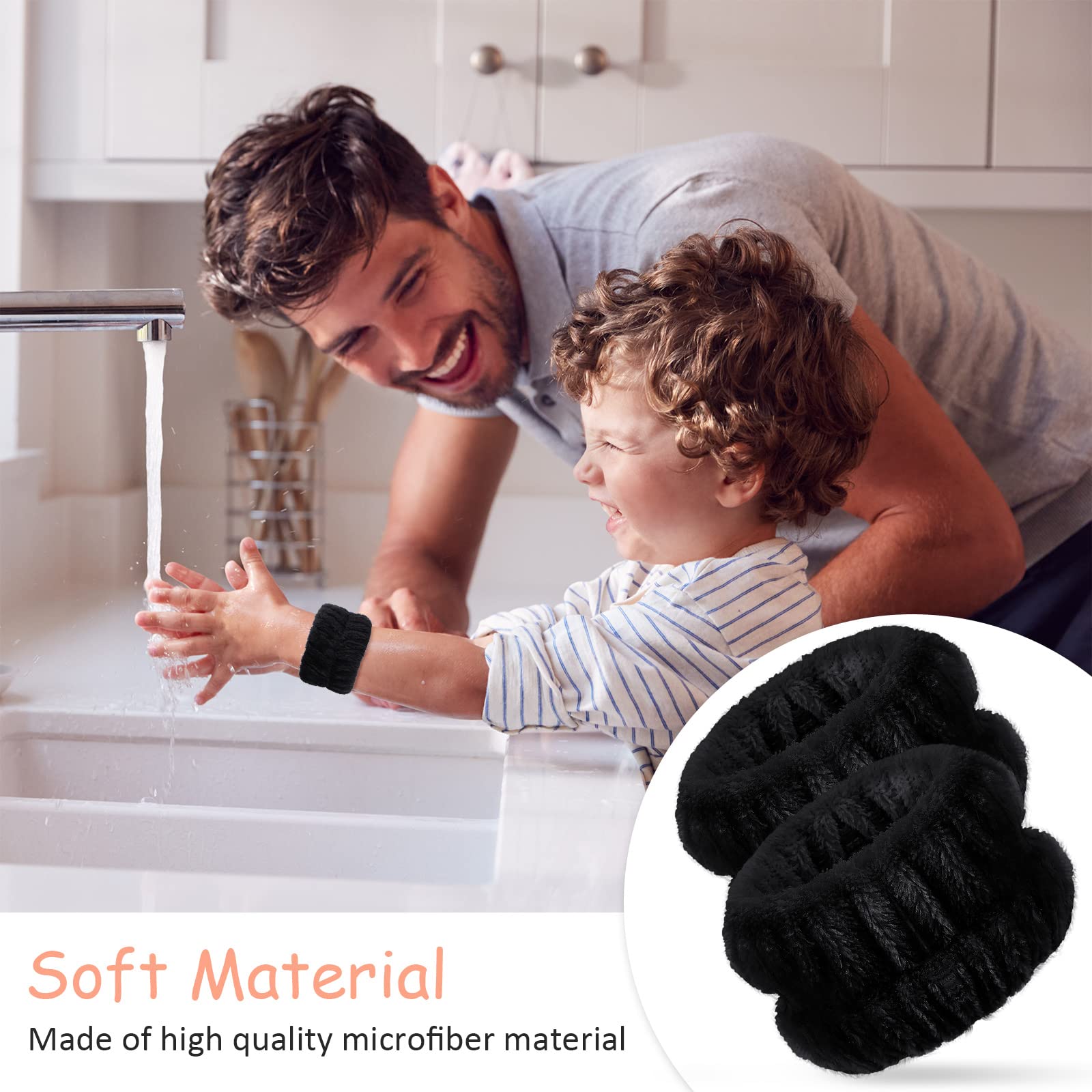 Wrist spa wash band set: there are 4 pairs of microfiber wristbands in black, you can wear these cleansing cuffs in line with your headband to reduce and prevent liquid from spreading and spilling down to your arms when washing