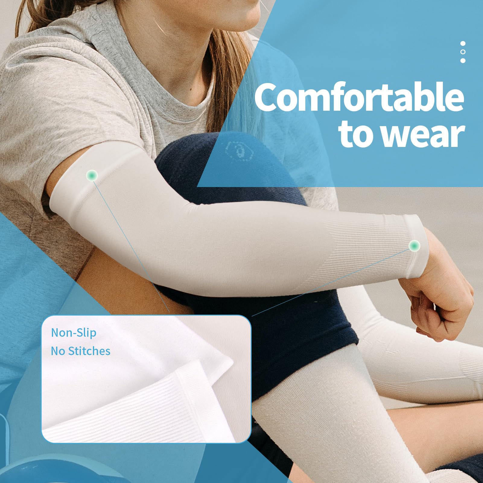 Soft and Comfortable Fabric: Ensuring its performance in blocking up to 98 percent of rays, we also make our arm sleeves lightweight, breathable and sweat-wicking. These sleeves not only protect you from the sun, additionally, but they also help keep you cool in the noonday sun.