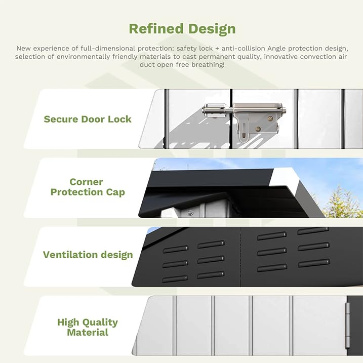 Flexible Storage Space – Verify Size Before Purchase: Ample room to organize garden tools, bikes, and more! Maximize your storage potential—please check the detailed size guide to ensure perfect fit for your needs.