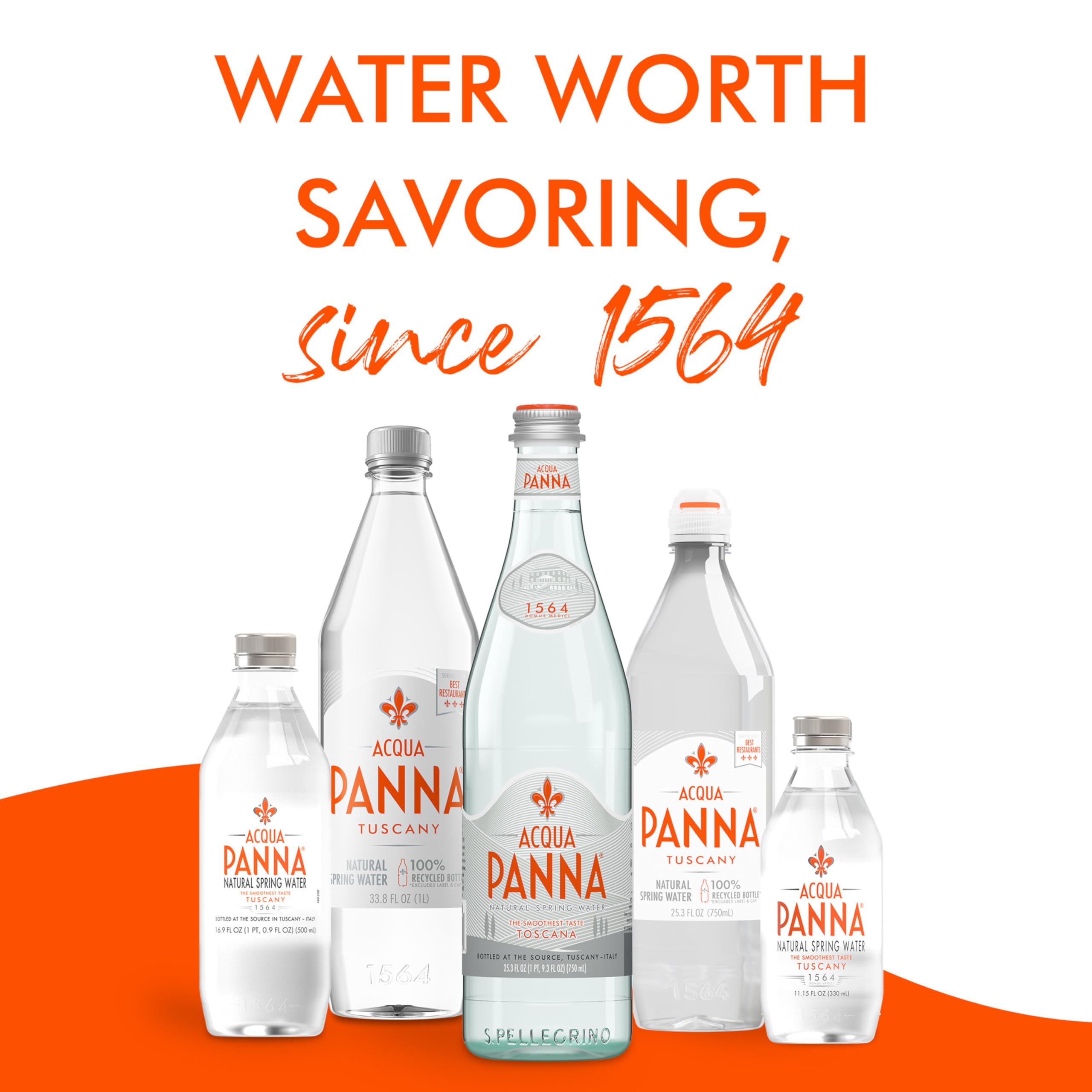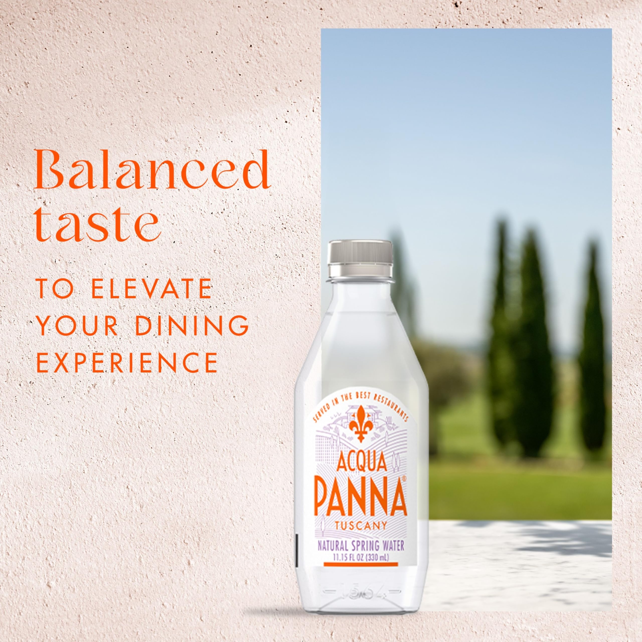 Acqua Panna Natural Spring Water is filtered slowly, drop by drop through the sun-drenched hills of Tuscany for an unmistakable taste since 1564. The special mineral balance of Acqua Panna bottled water offers a distinct taste that makes it perfect for pairing with your food and wine, harmonizing and elevating each dining experience. An established leader in fine dining, Acqua Panna water is served in the best restaurants the world over and now can be savored at home. The stylish water bottle design is convenient to bring with you whenever you are on the go. Acqua Panna is truly a water worth savoring.