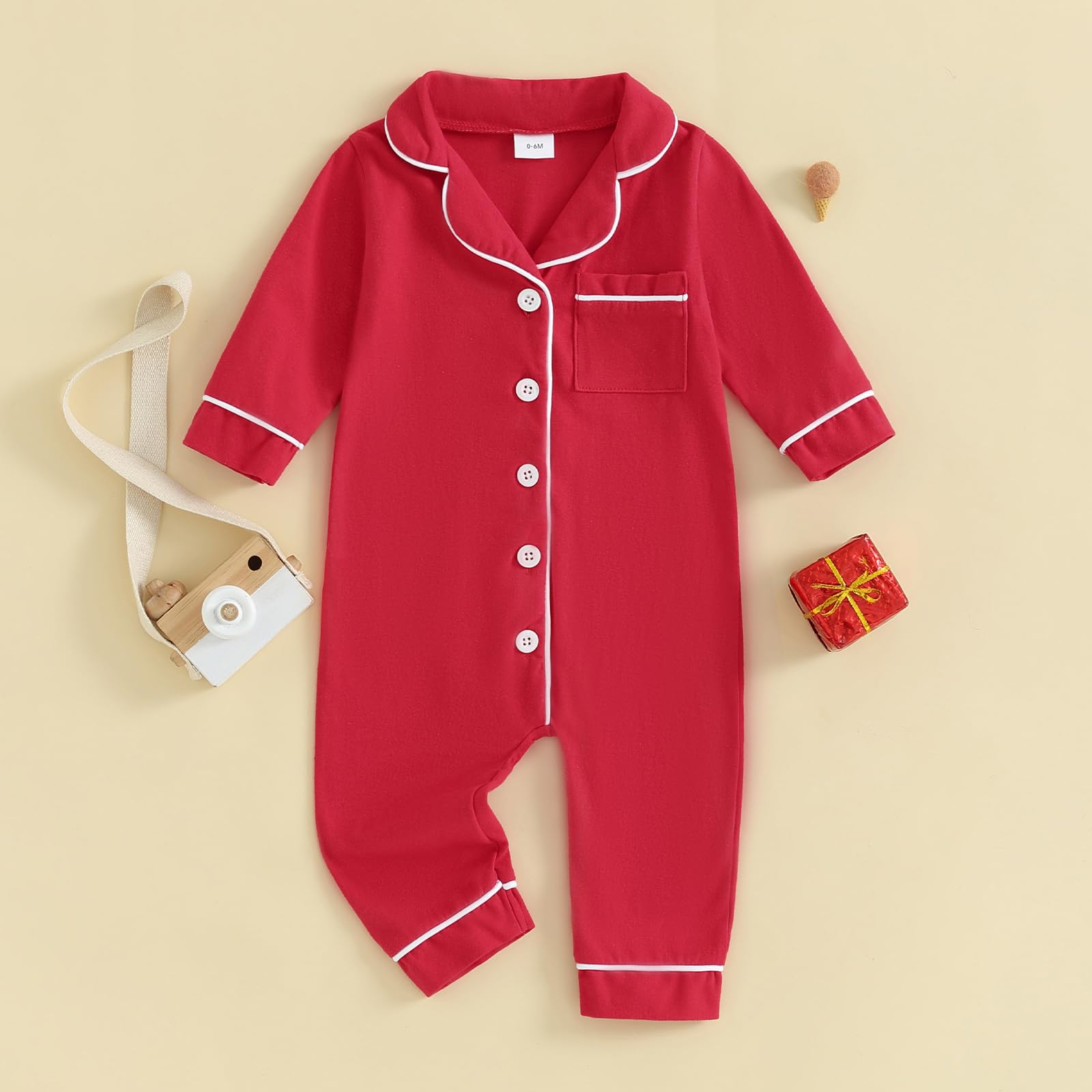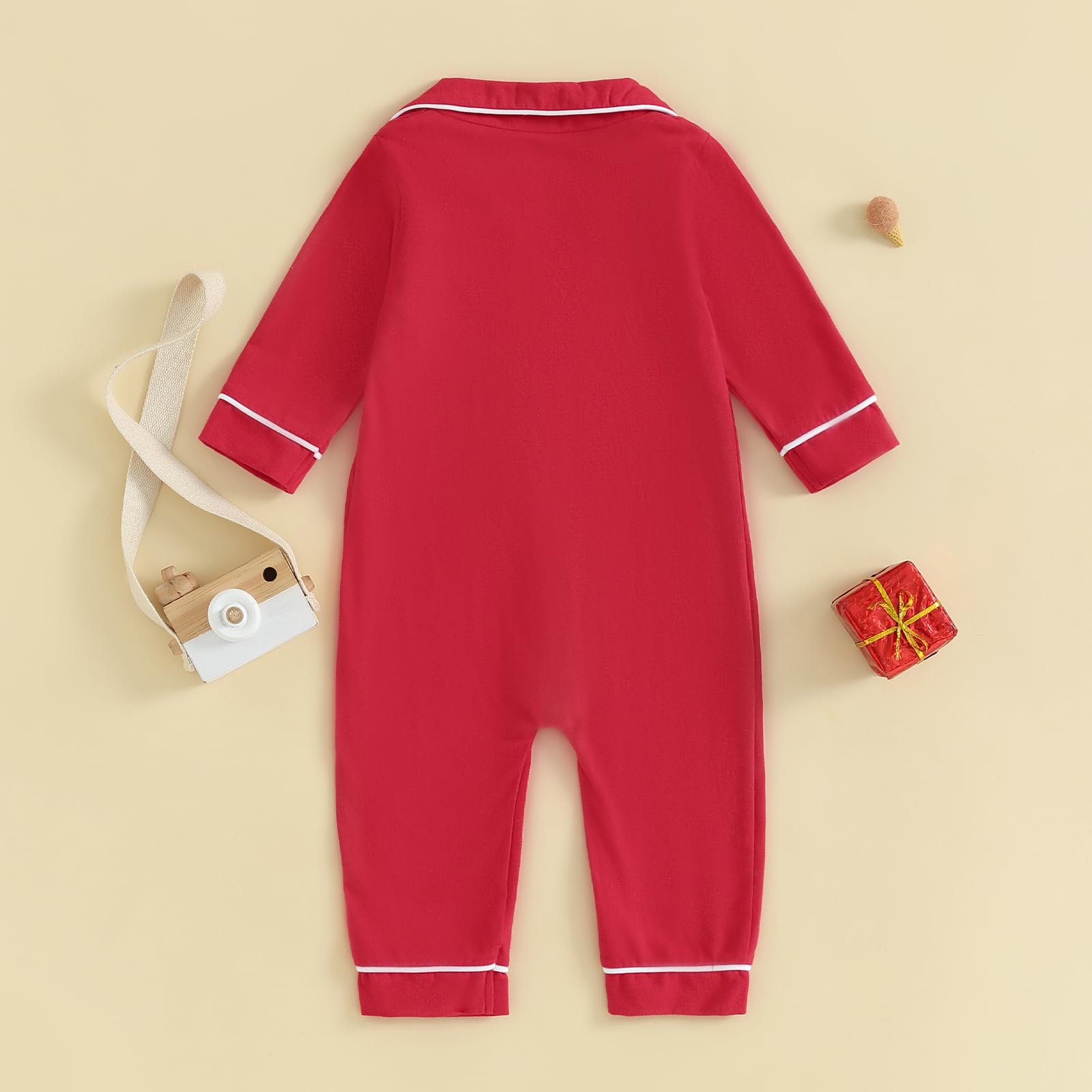 BEST GIFT FOR BABY: Infant clothes, baby boy jumpsuit pajama, baby girl red christmas pajamas, onesie pajamas kids nice gifts for your baby, your baby will love you more.Package include: 1* Red christmas long sleeve button down one-piece sleep onesie rompers pajamas.