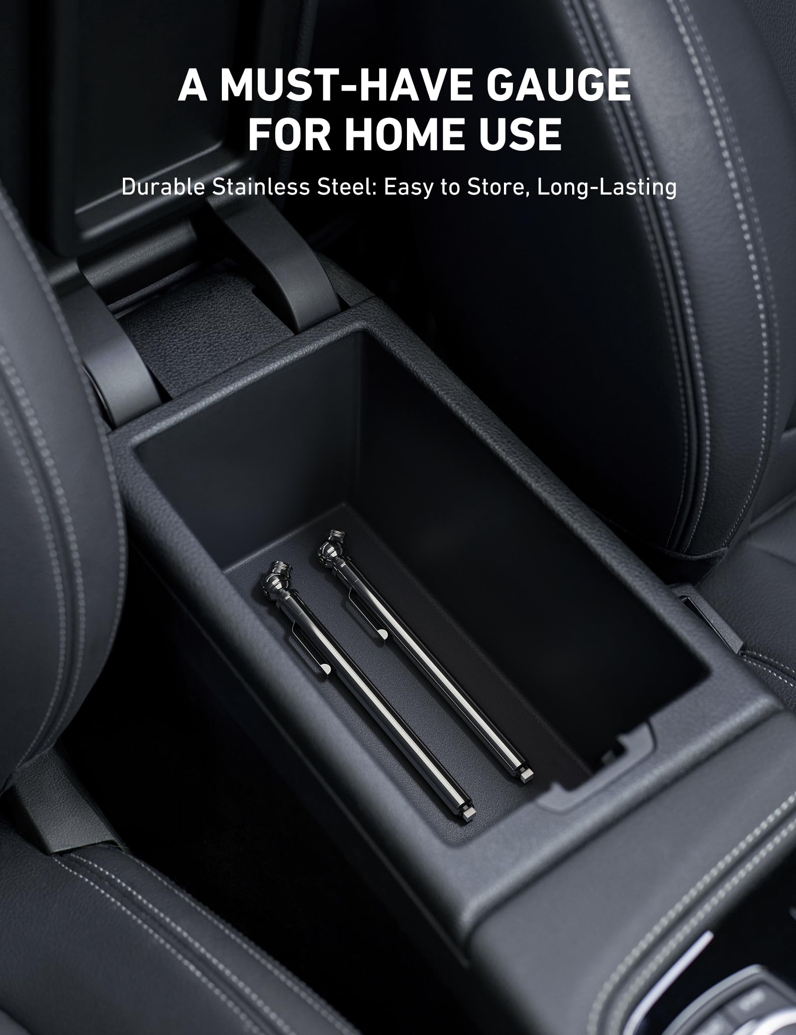 RUGGED DESIGN: The stainless steel components prevent rust and corrosion while the precision-crafted nozzle seamlessly seals onto the valve stems for highly accurate readings (±2% span). We also provide 4 valve stem caps for convenient replacement.