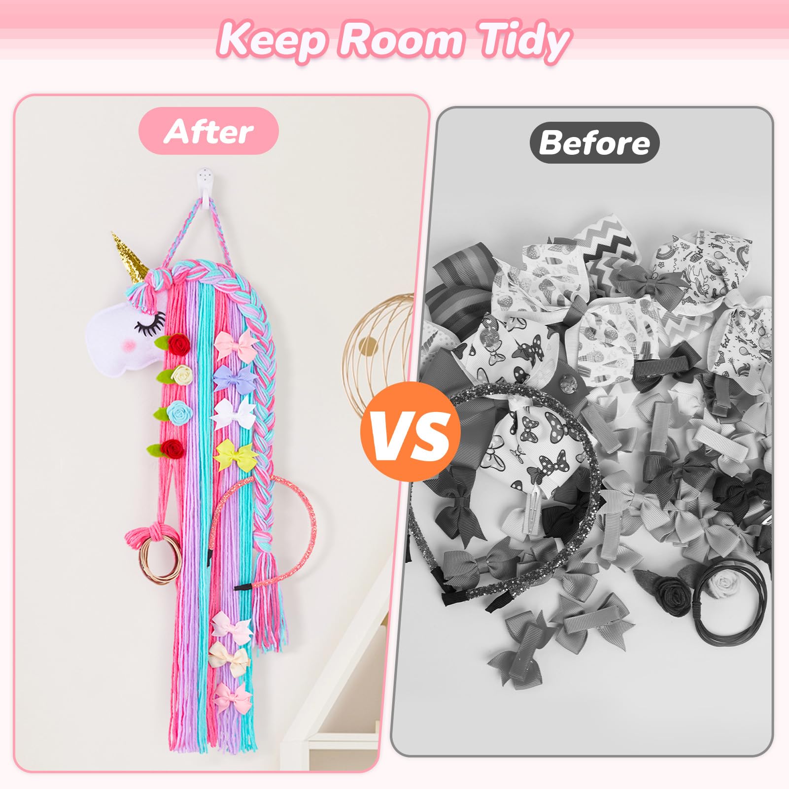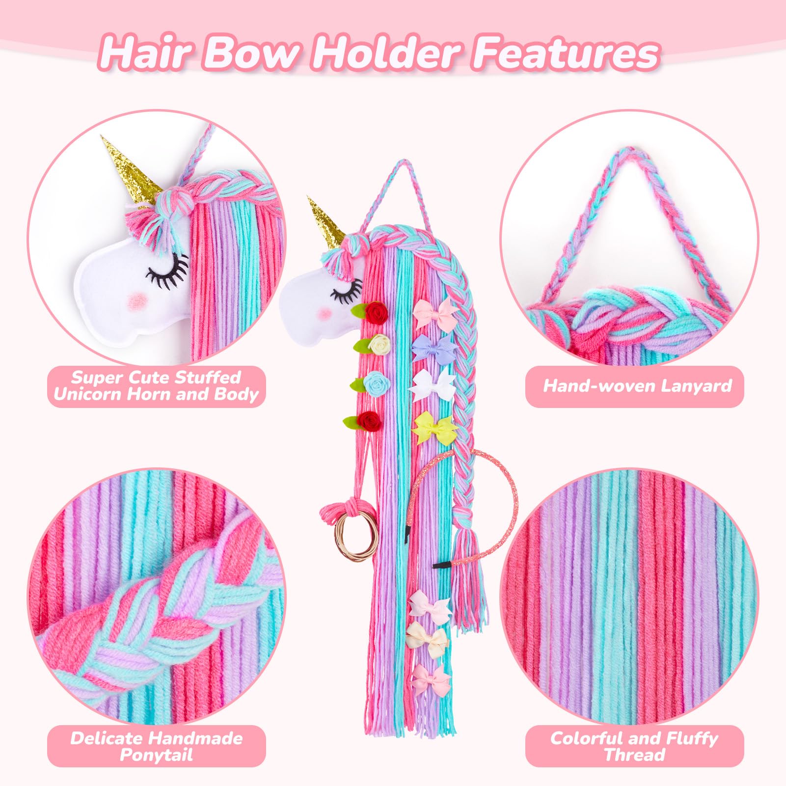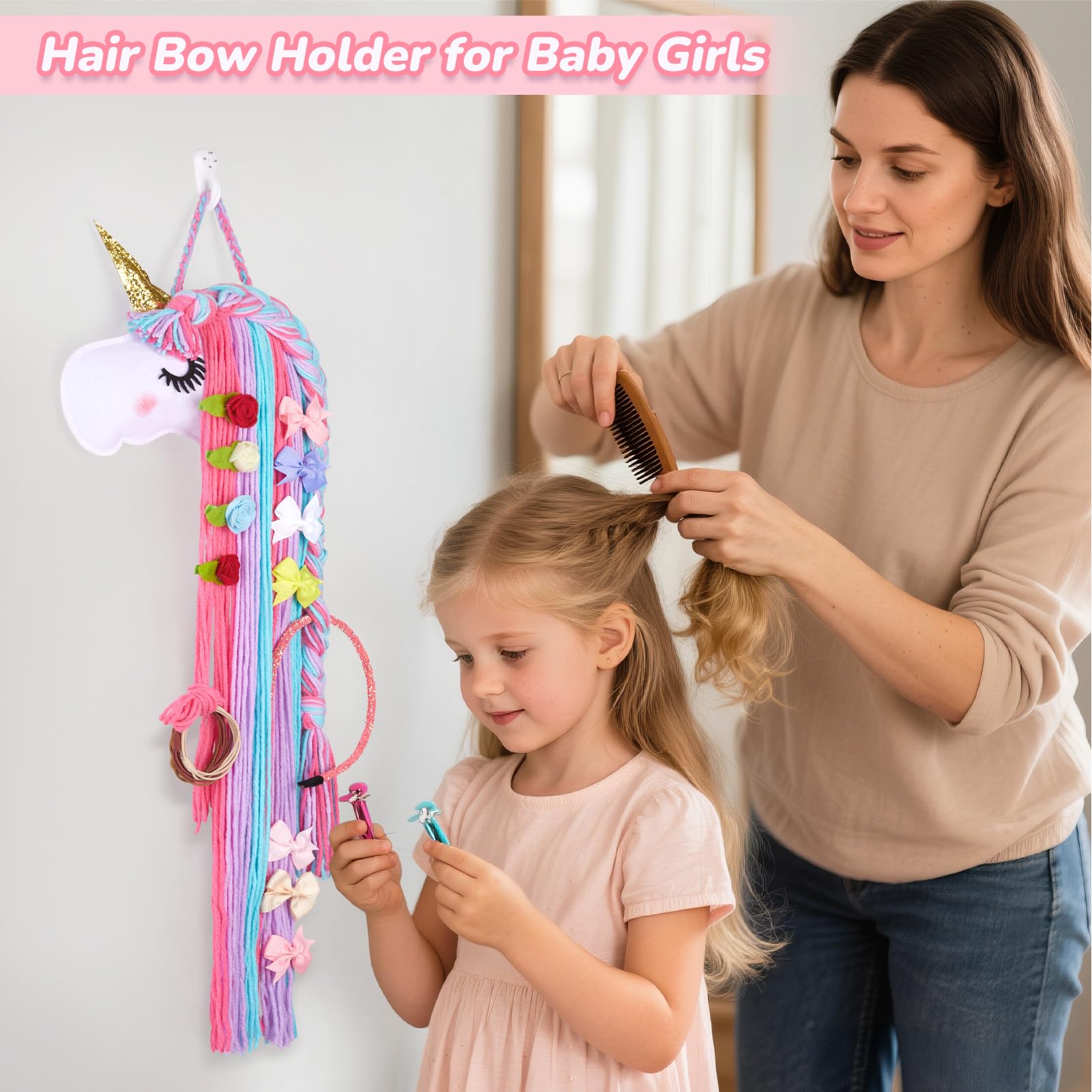 Multiple Uses: Basumee unicorn hair clip organizer is designed for storing kids hair accessories, while it is also a cute unicorn wall hanging decor for girls room and unicorn theme party
