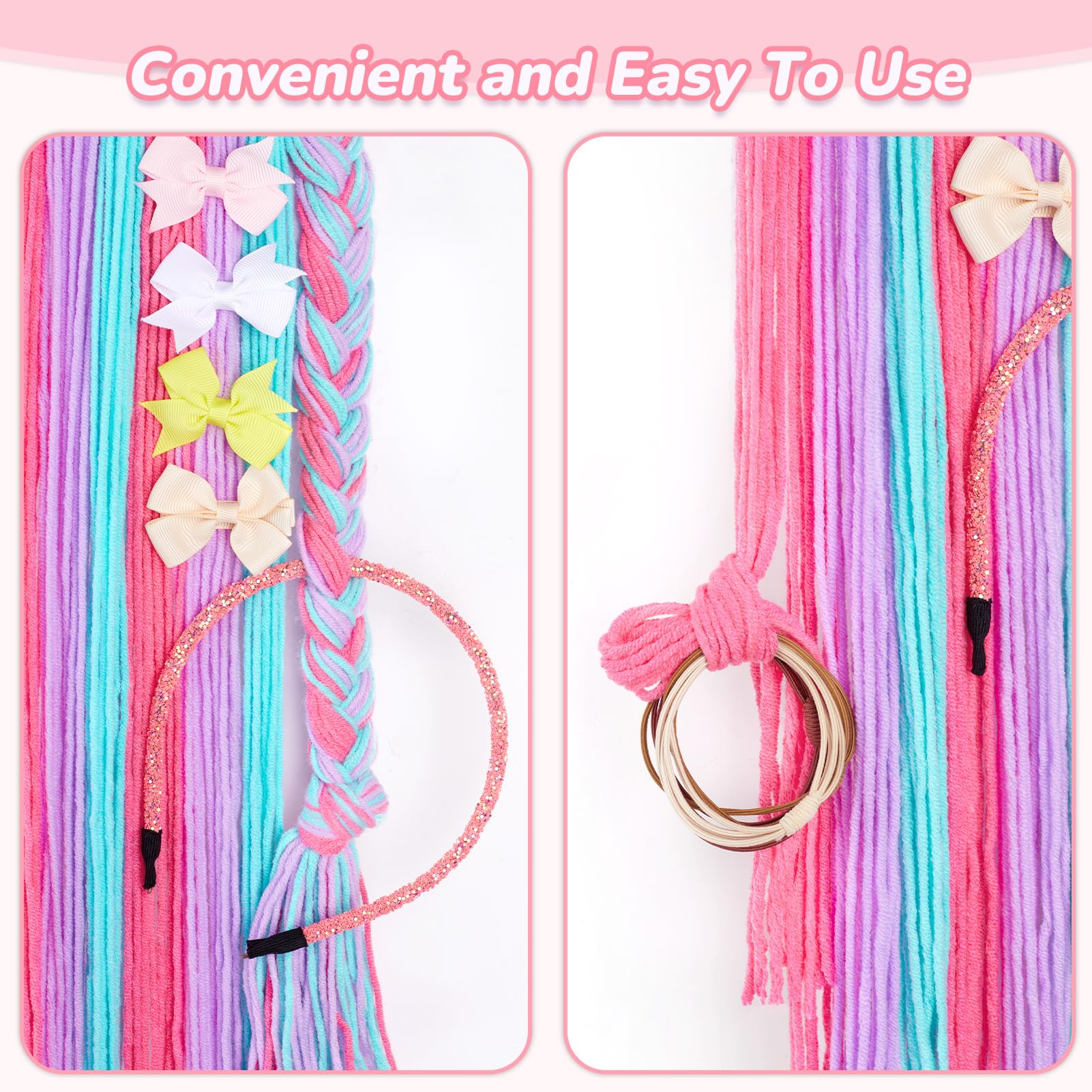 Material: The tassels for hanging clips and the braided hanger on the top are made of yarn, which is sufficient for storage baby girl hair clips