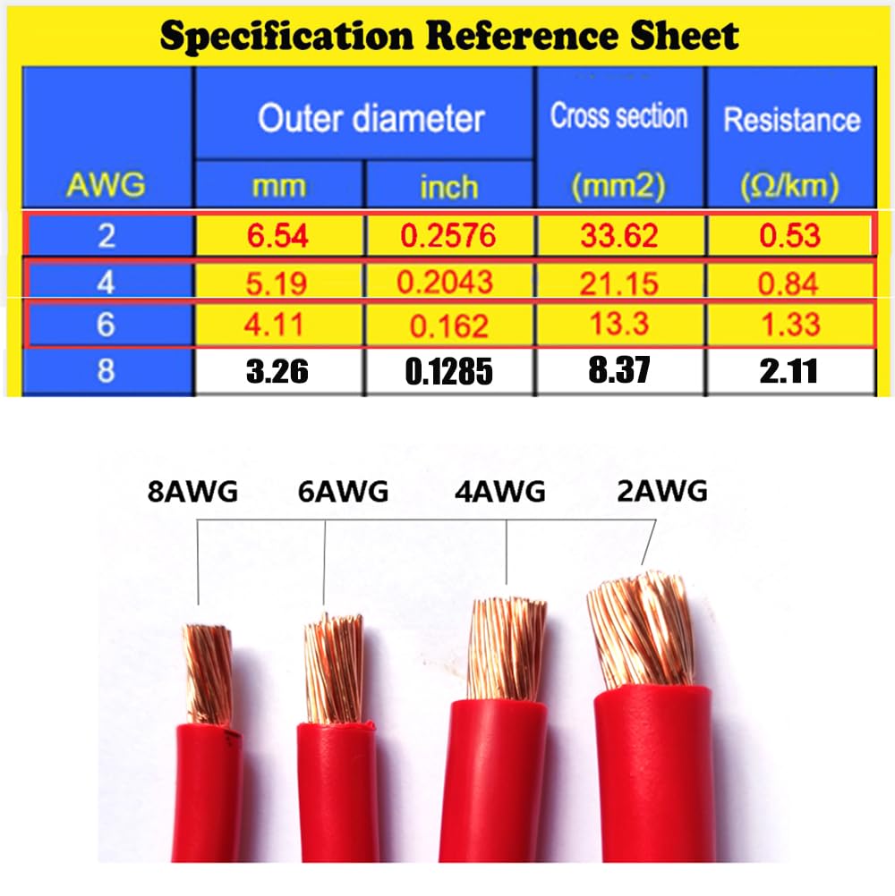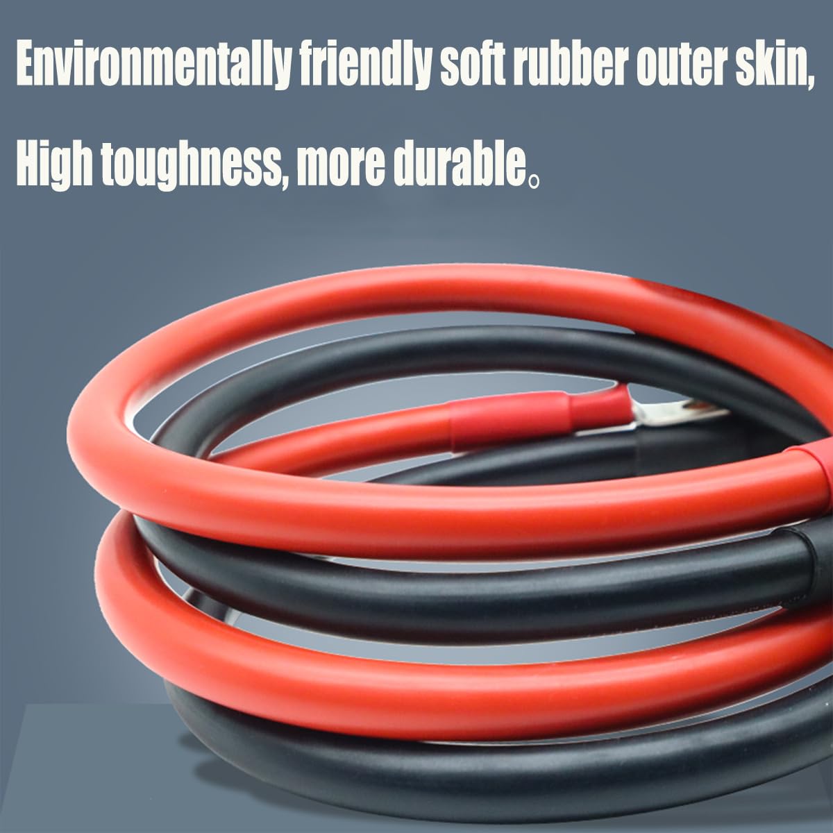 Application: 2 positive and negative cables wear-resistant, waterproof, moisture-proof, flame-retardant and heat-insulating, and are ideal for inverter batteries, heavy-duty vehicles,RVs, solar energy, motorcycles.
