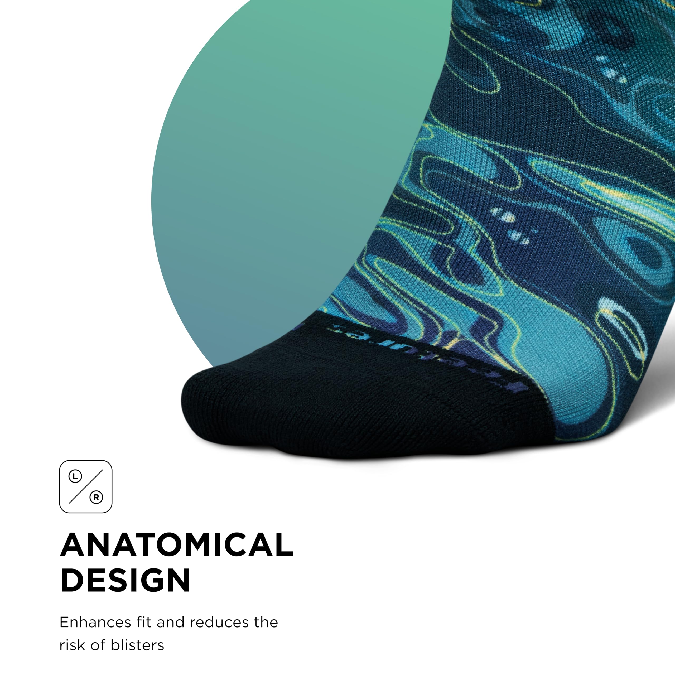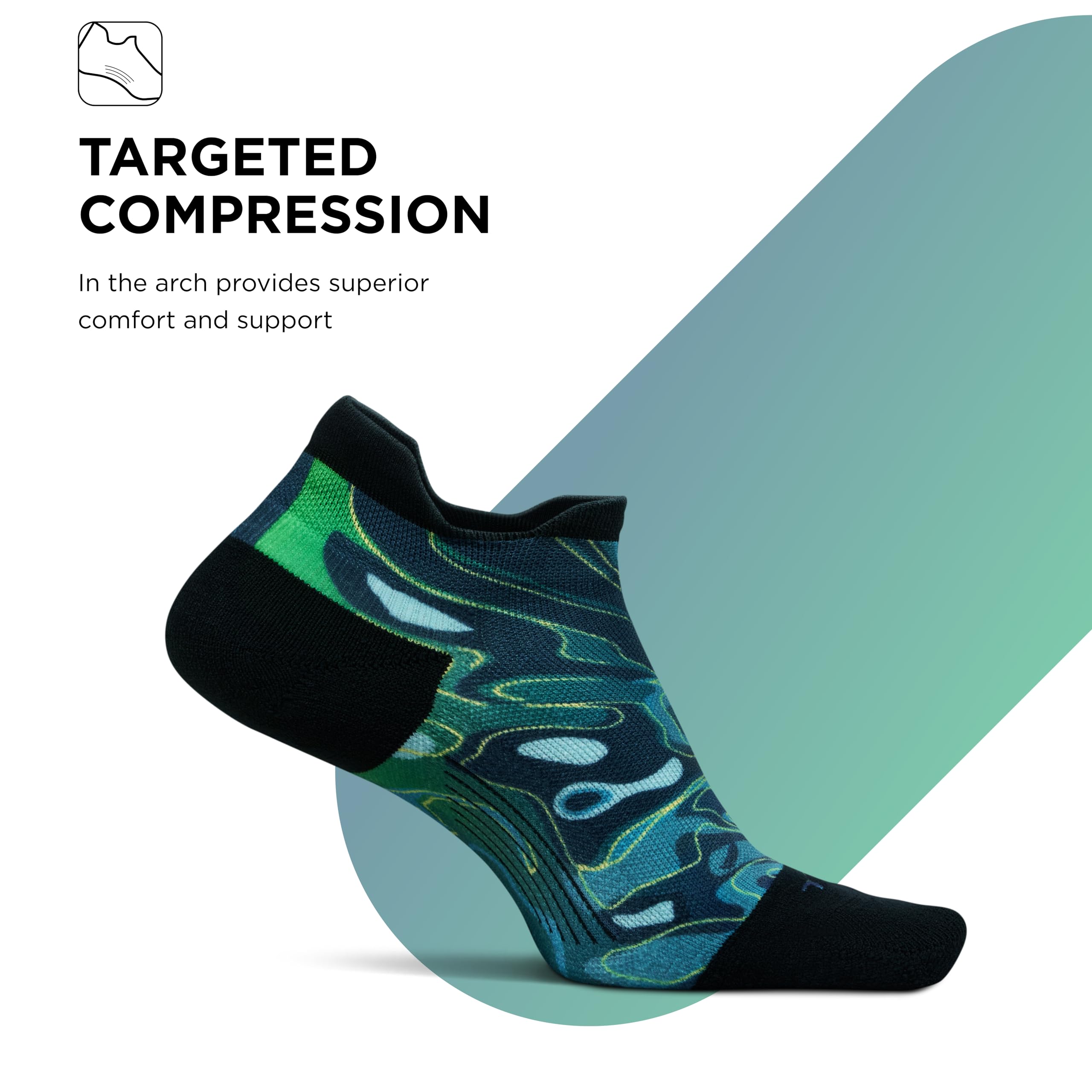 Sports Sock: These Feetures socks are engineered with Targeted Compression and anatomical design that conform to the left and right structure of the foot providing a custom-like fit and reduced risk of blisters