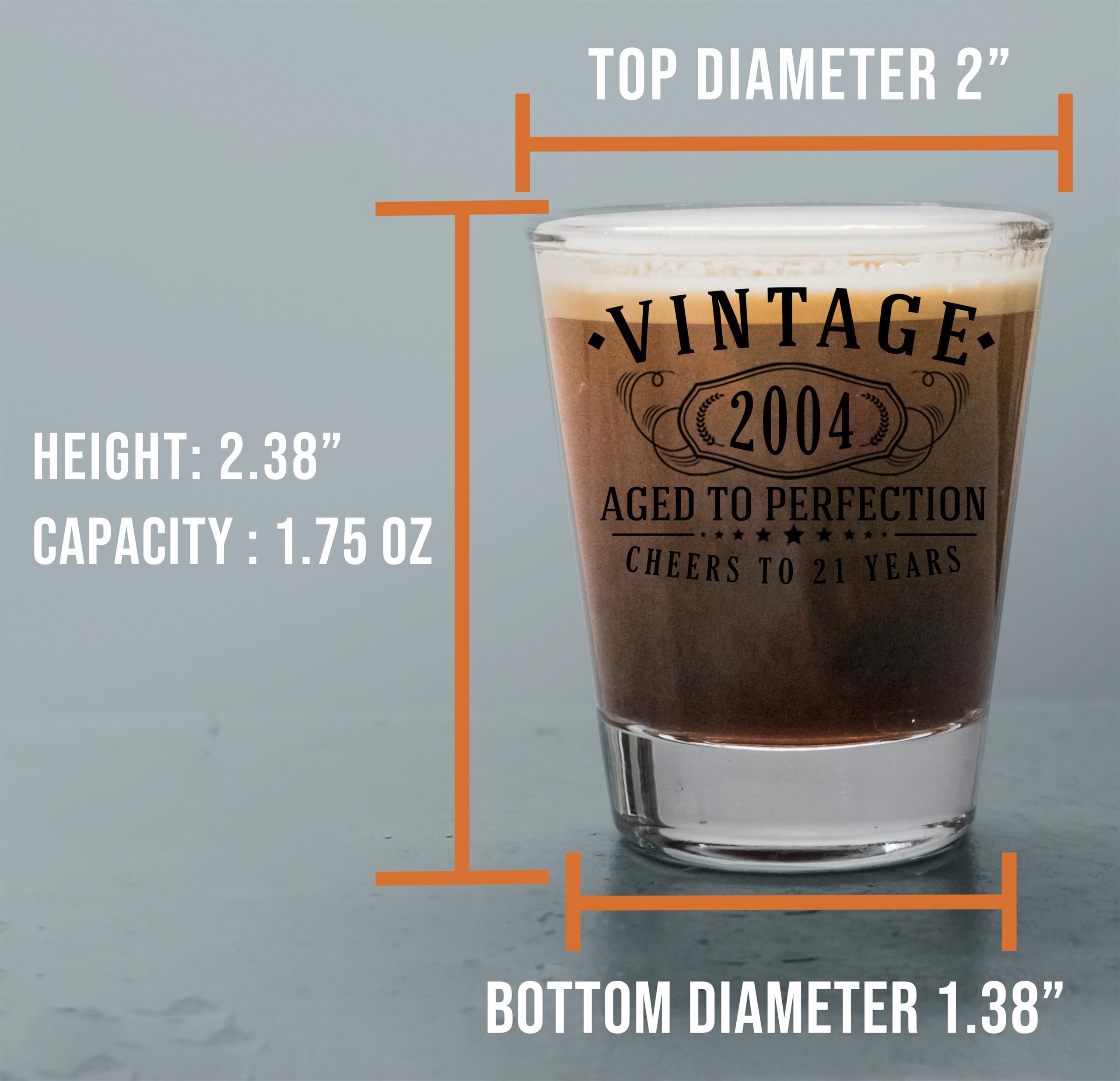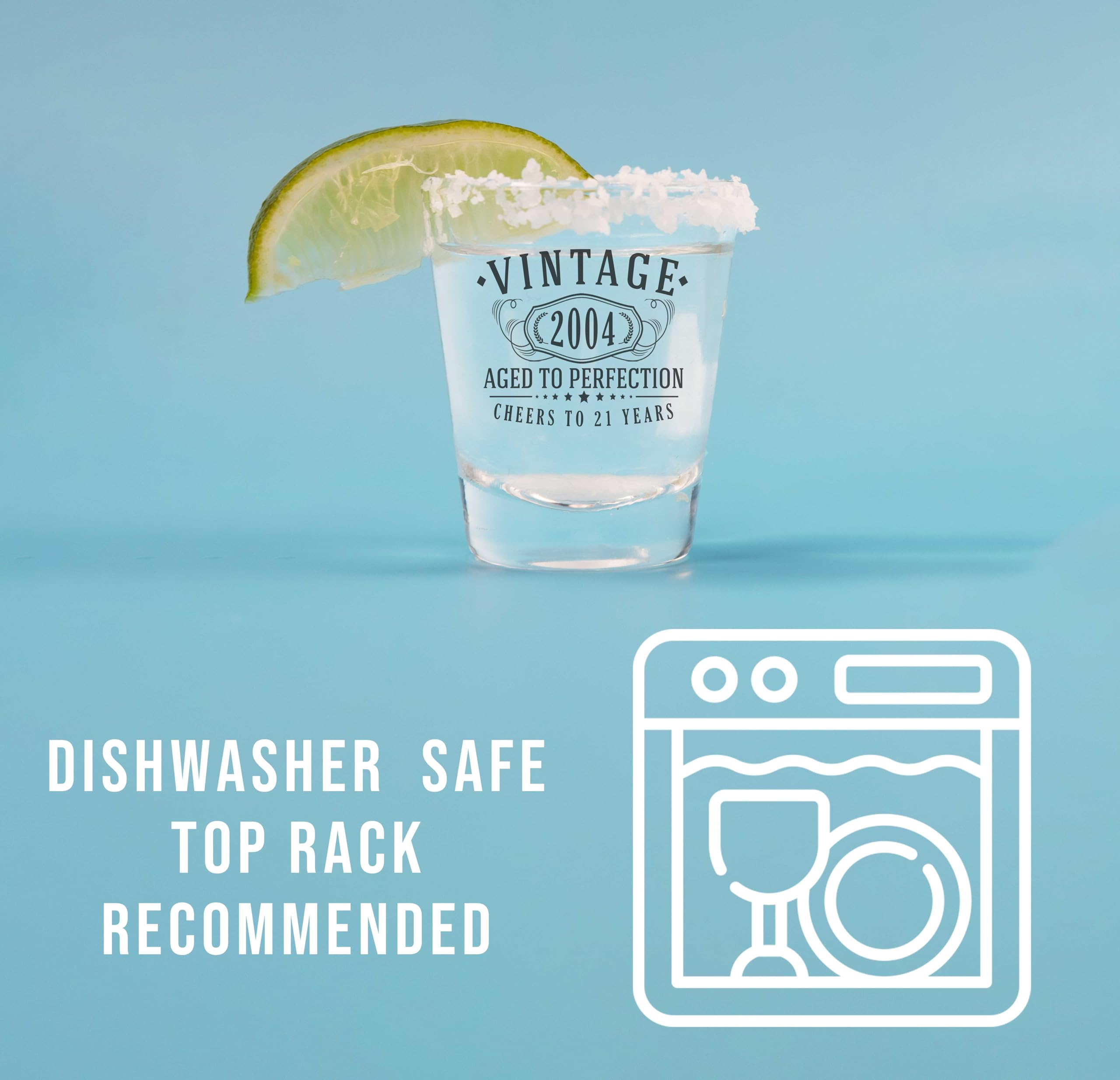 Printed design is high quality and dishwasher safe, making these easy to care for. This shot glass with the vintage design is a gift that will make any birthday more special.