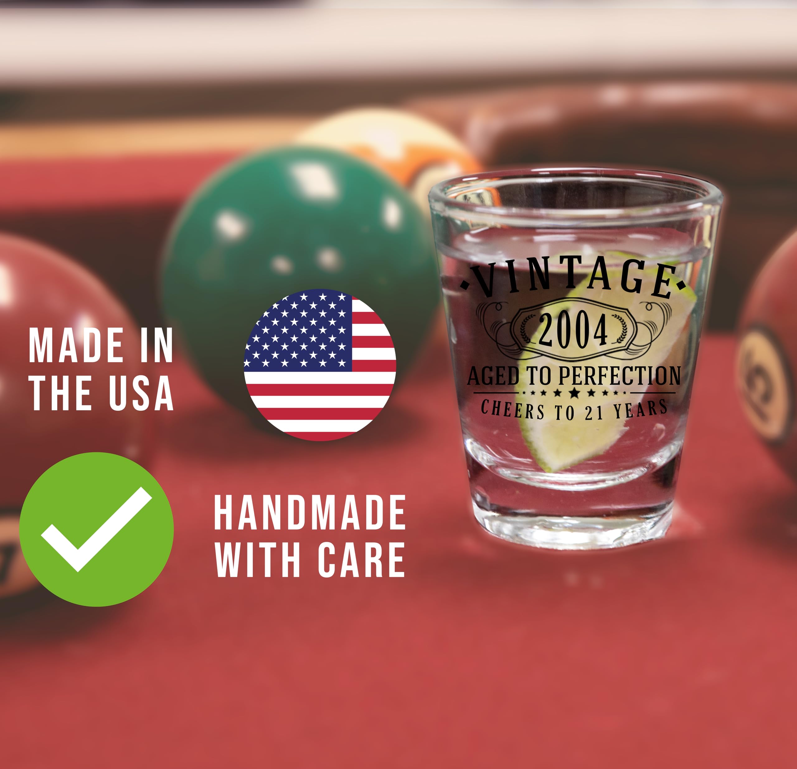 This vintage premium shot glass is made in Fayetteville, Arkansas, by a dedicated local team. We strive to give anyone turning 21 a special way to celebrate. Wish the guy or girl in your life a very happy birthday with this great gift.