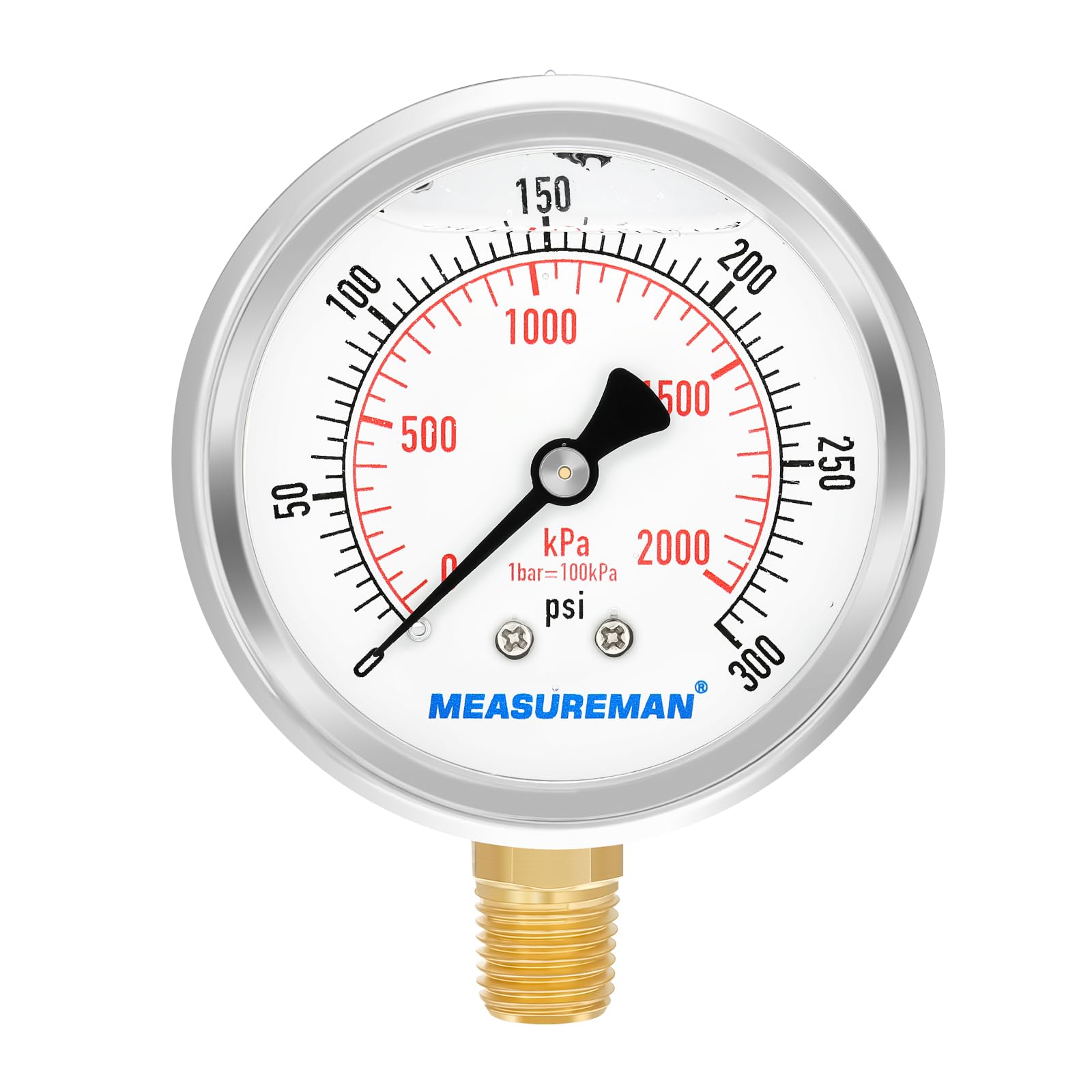 Brass and Stainless Steel wetted parts for measuring non-corrosive liquid and gas pressure. Such as Water Oil, Fuel pressure test. Compatible with pool sand filter, water pump, pressure tester, pressure regulator and etc..