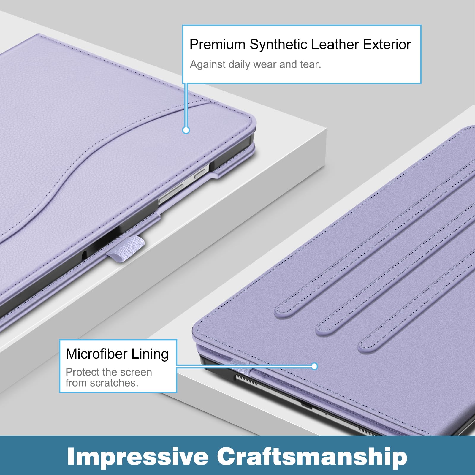 Simple Fashion Design: Built from premium synthetic leather exterior and soft microfiber interior - snug fit, durable and protective. Protect your tablet from scratches, dirt and grime