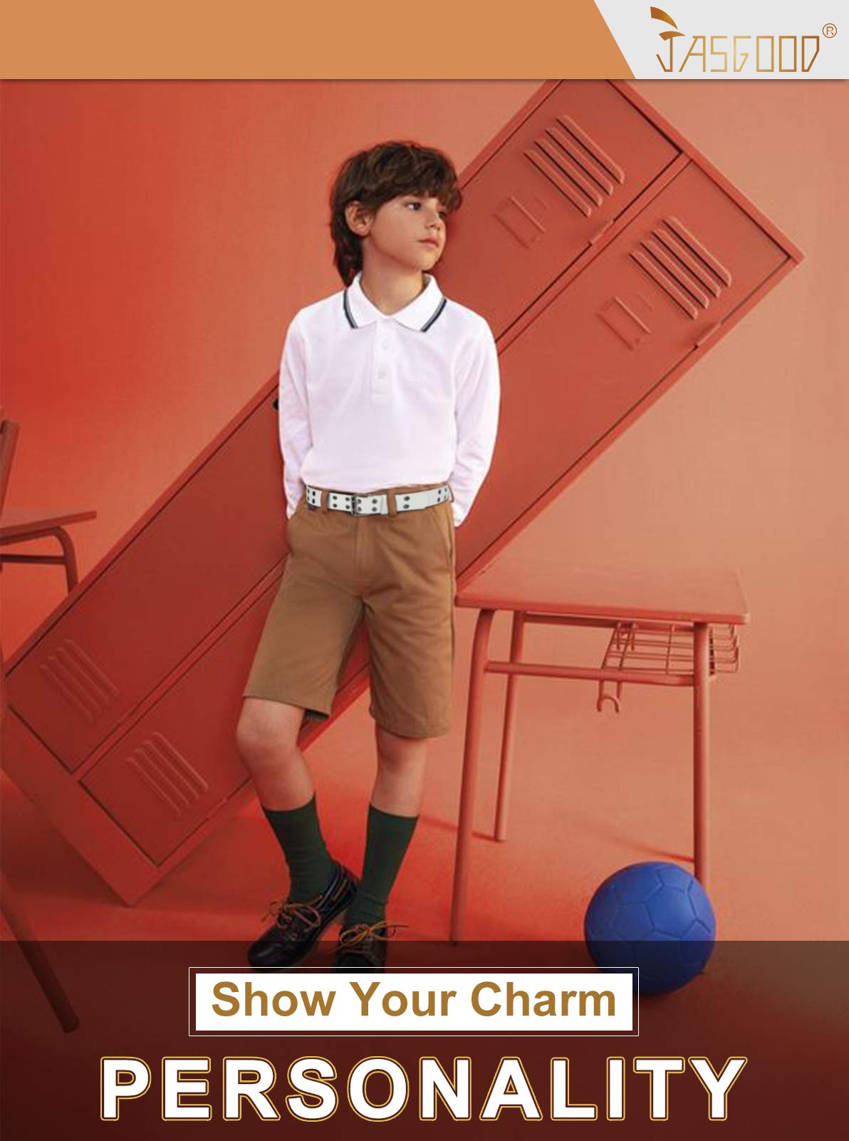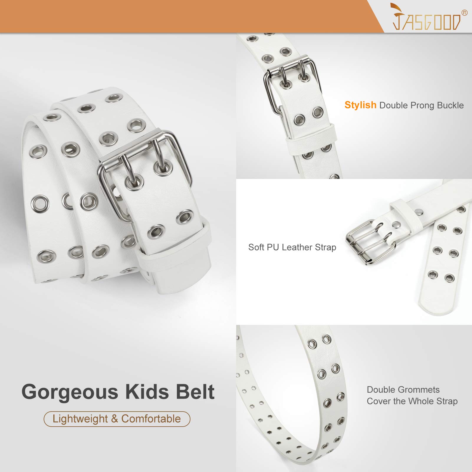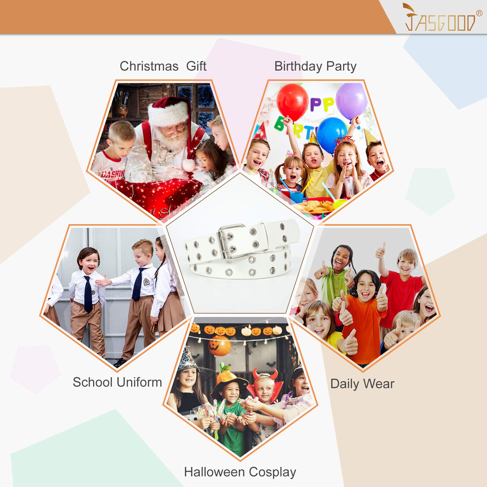 MULTIPLE COLOR---This kids grommets belt have black, white, coffee and rose red to meet all your kids outfit demands and will give your kids versatile style. It can perfect match with their school uniforms, jeans, pants,dress and blouse. The double studded hole belts will be the great aesthetic accessories to decorate your kids waist and light up their outfits!