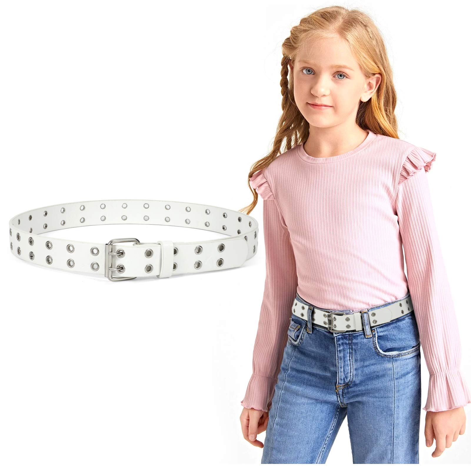 FASHION DESIGN FOR BOYS AND GIRLS---This kids double metal eyelets belt is great for boys and girls. A fashion item to hold your boy and girls pants up and decorate their outfit in the daily life or other spacial occasion. The punk feature make the belt special and catch people’s eyes.