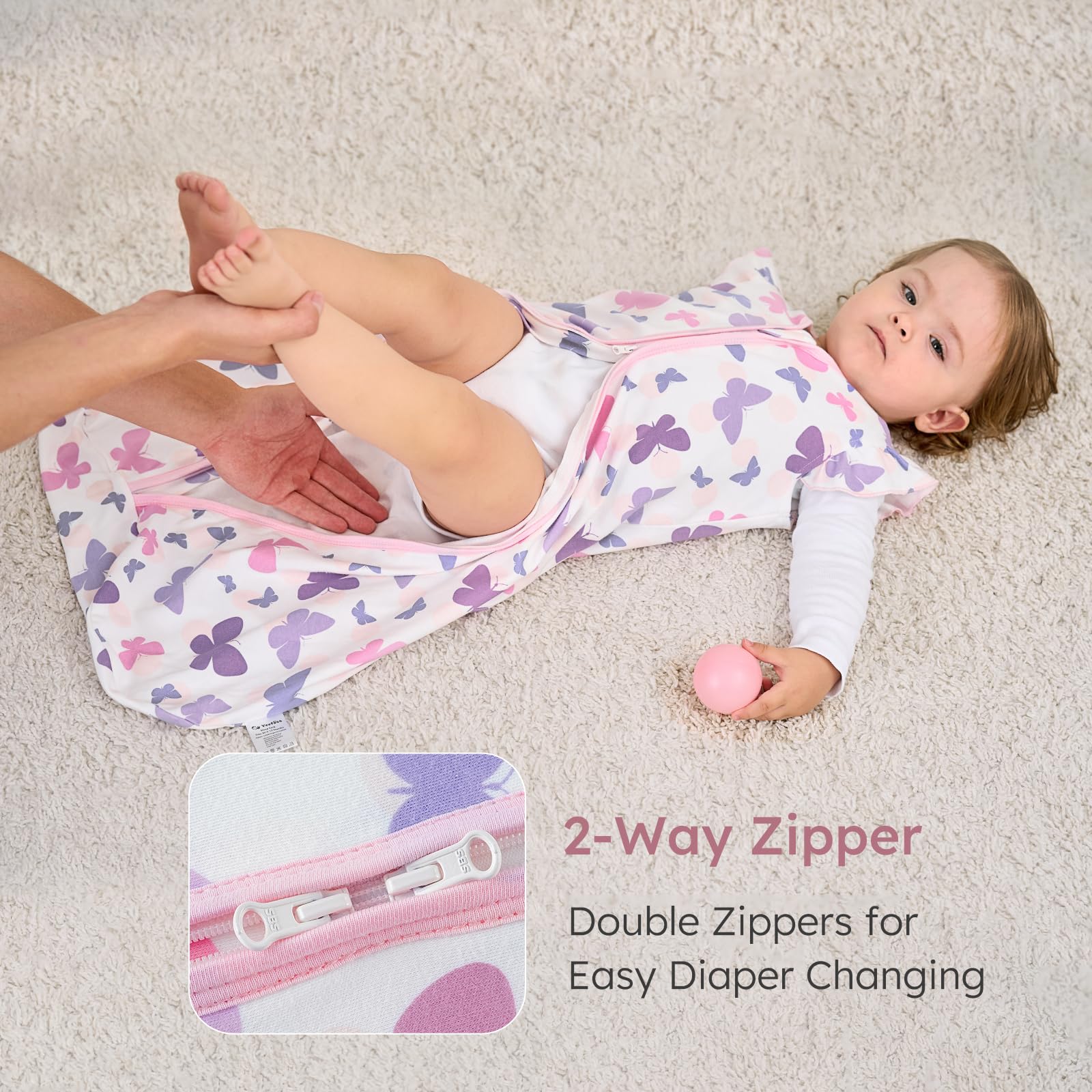Smooth 2-Way Zipper: Our sleep sack double zipper makes midnight diaper change easily. The interior zipper guard and top zipper cover protect any scratches or discomfort from baby's delicate skins, ensuring the safety of your beloved baby.