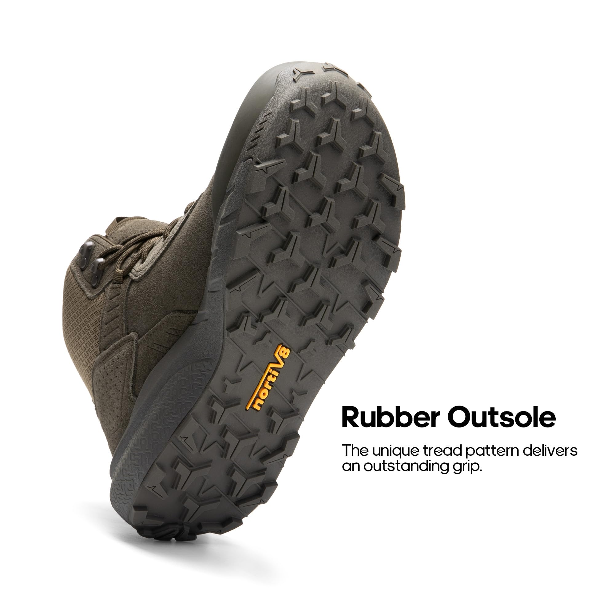 Advanced Outsole: The combination of EVA and rubber in the thick midsole provides optimal shock absorption. The rubber outsole, coupled with a unique tread pattern, delivers outstanding grip on various surfaces, making these men's boots perfect for outdoor activities.