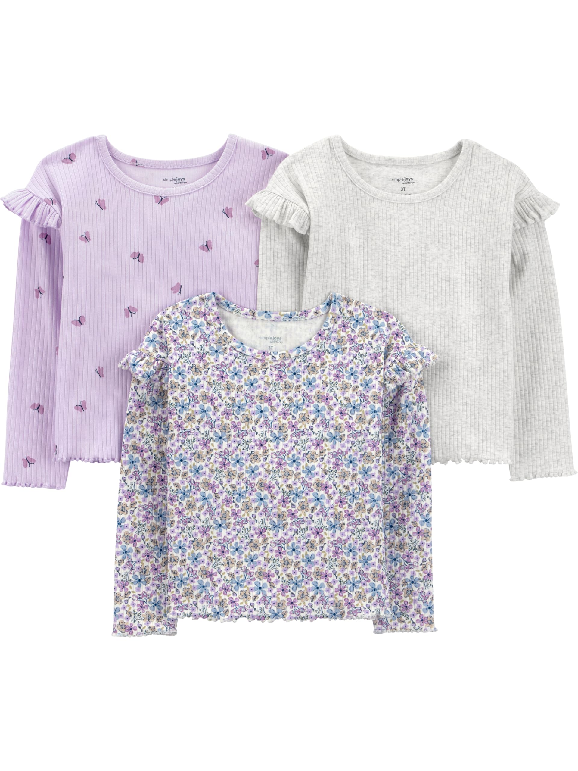 Description Get your little one set for any adventure with this 3-pack long sleeve shirt set for girls from Simple Joys by Carter’s! This set offers unbeatable value, providing three high-quality tees in one pack, perfect for rotating through the week. Made by Carter’s trusted brand known for durability and comfort, each top is crafted from soft, comfy fabric that stands up to both playtime and machine washes. The set includes a fun mix of prints and colors, bringing a splash of personality to every outfit—whether she’s off to school or hanging out with mom. Treat her to comfort, quality, and style with this versatile 3-pack shirt set!